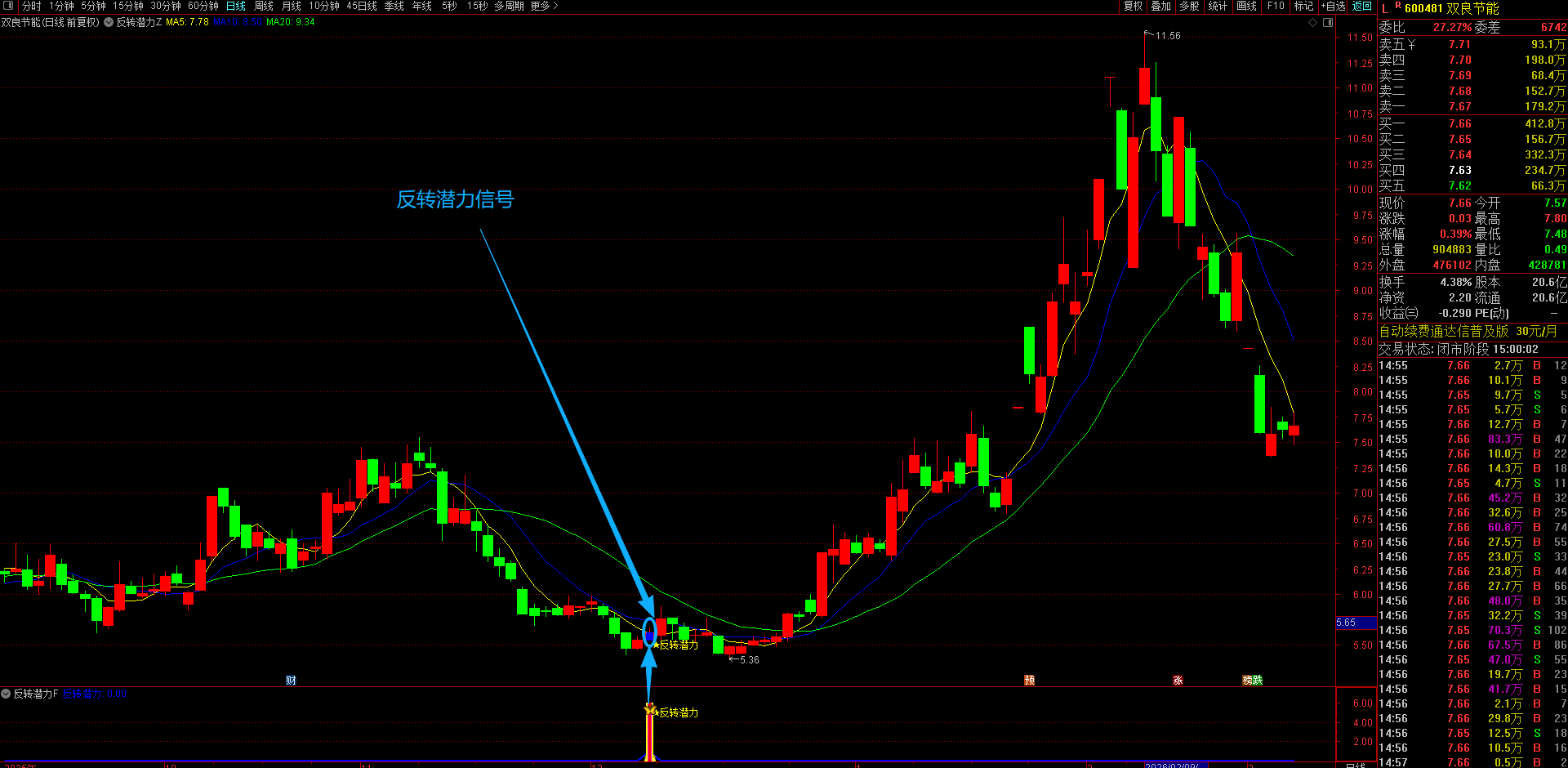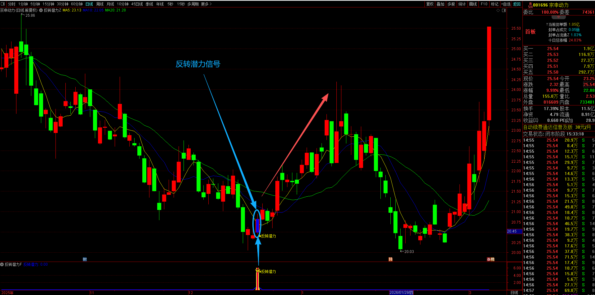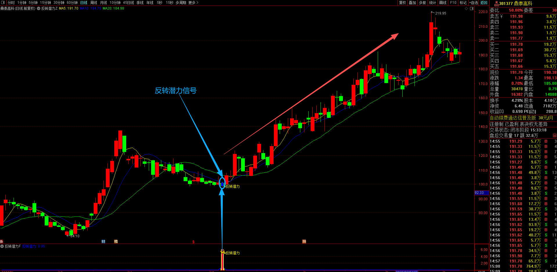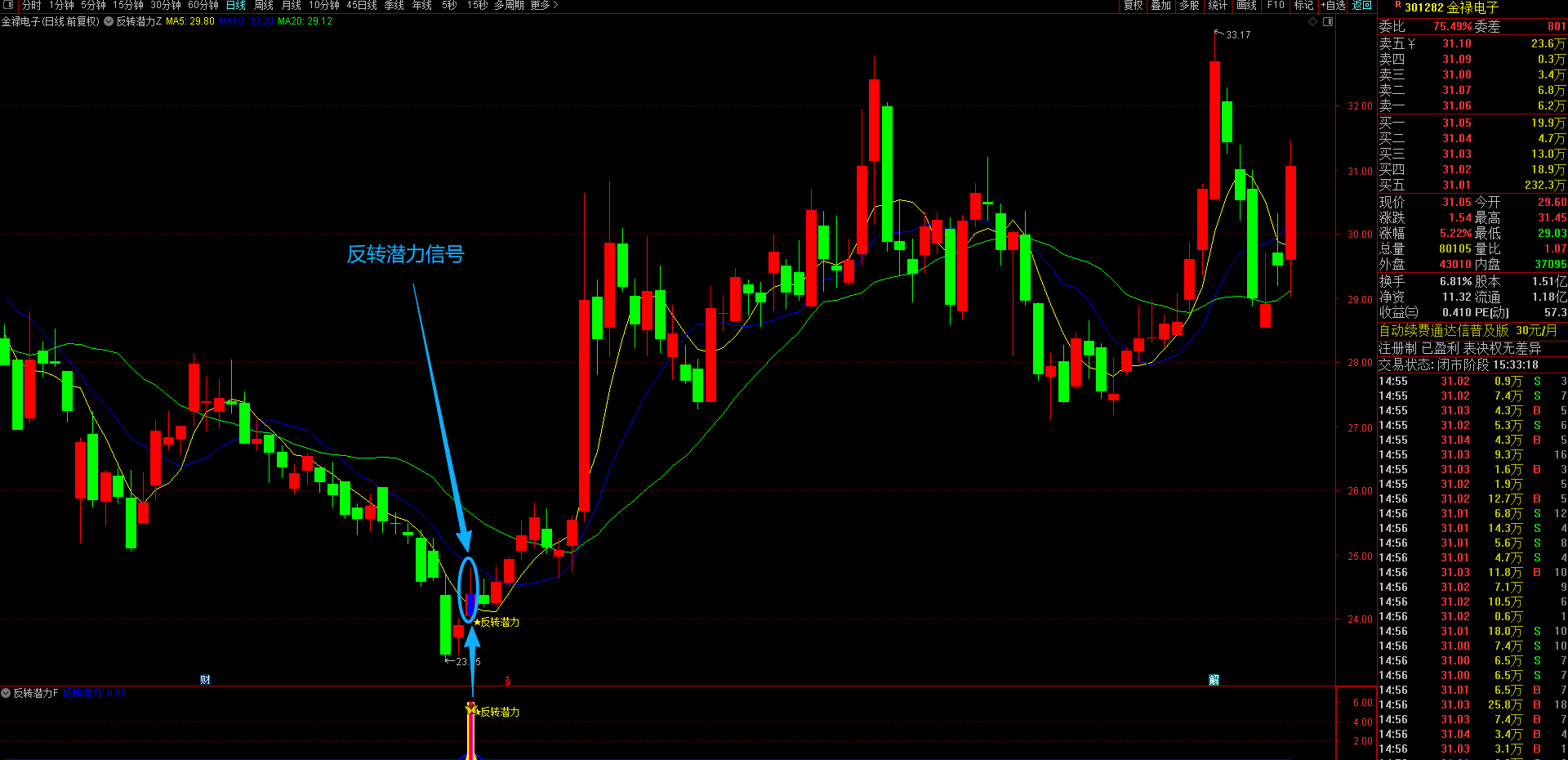 (通达信【反转潜力】主副图选股指标,专买在主力拉升爆发前夜金股提前潜伏不用追高 手机电脑通达信通用。)