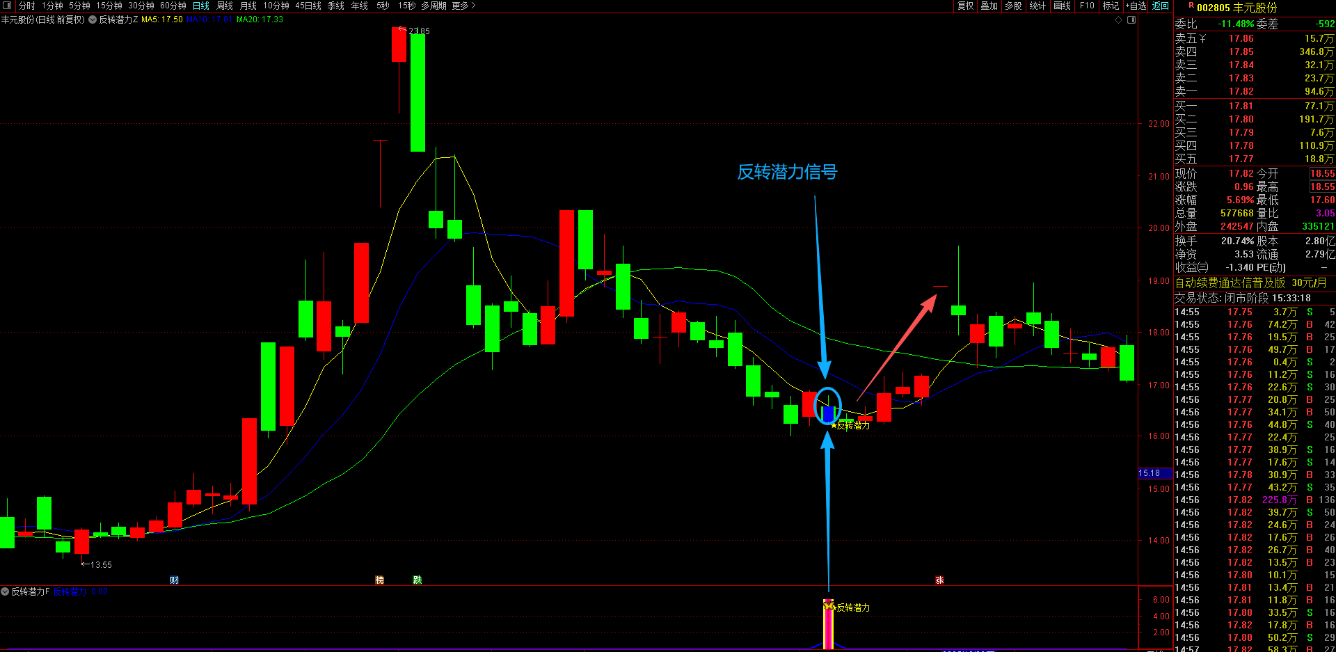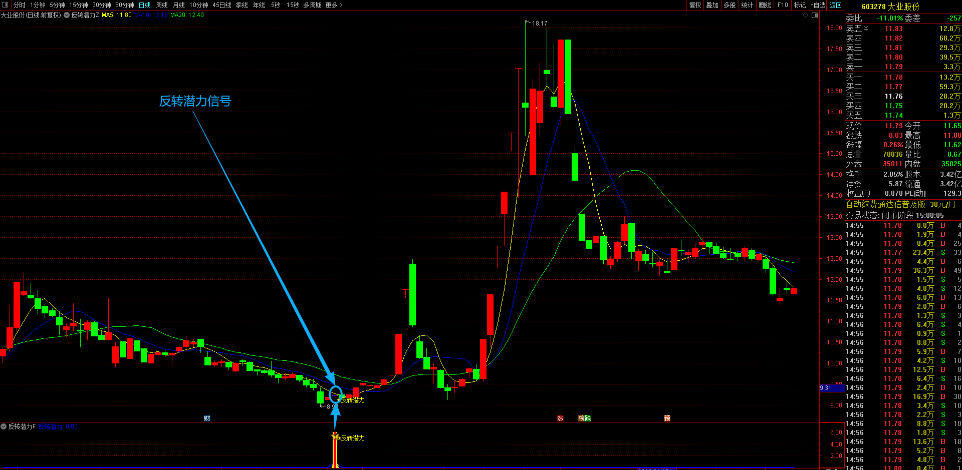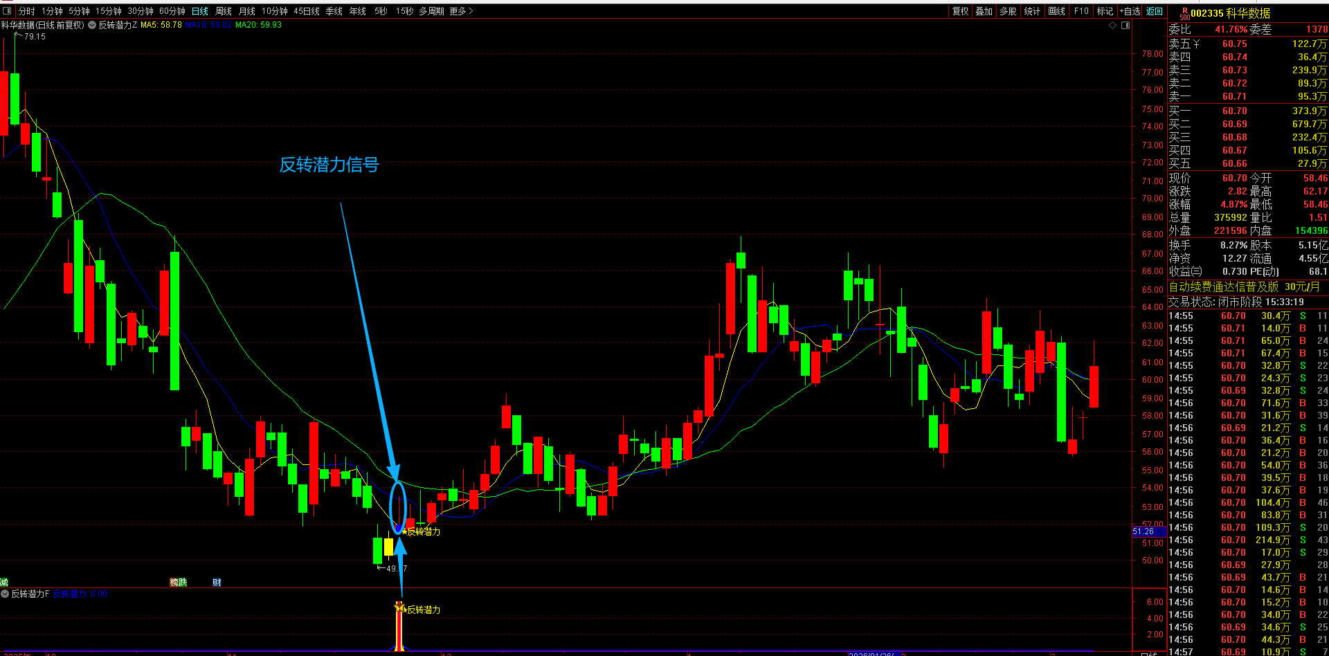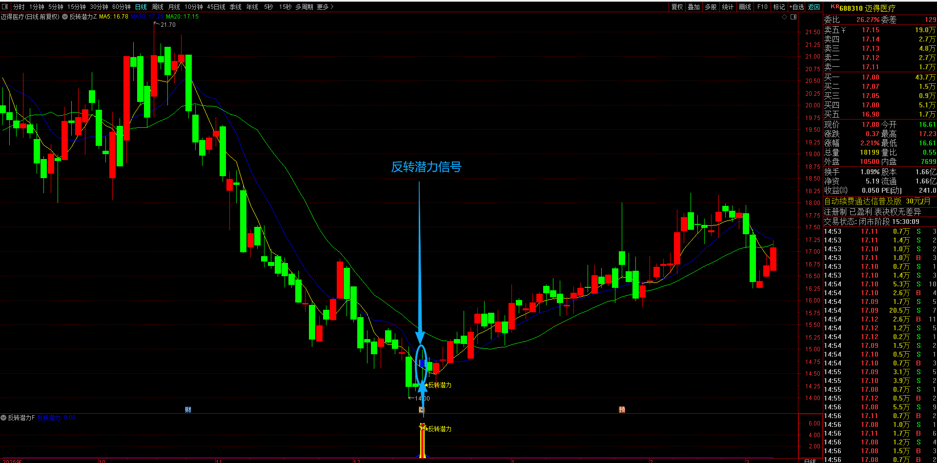 (通达信【反转潜力】主副图选股指标,专买在主力拉升爆发前夜金股提前潜伏不用追高 手机电脑通达信通用。)