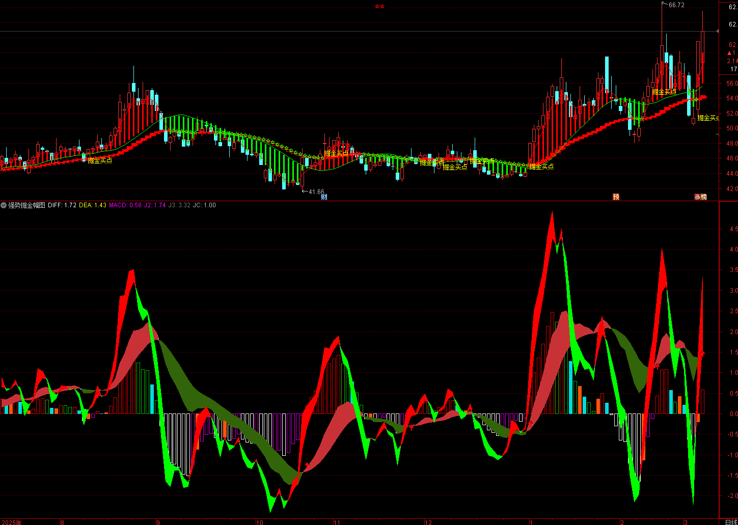 (通达信强势掘金指标系统 本指标分为K线模块区域和幅图指标模块区域)