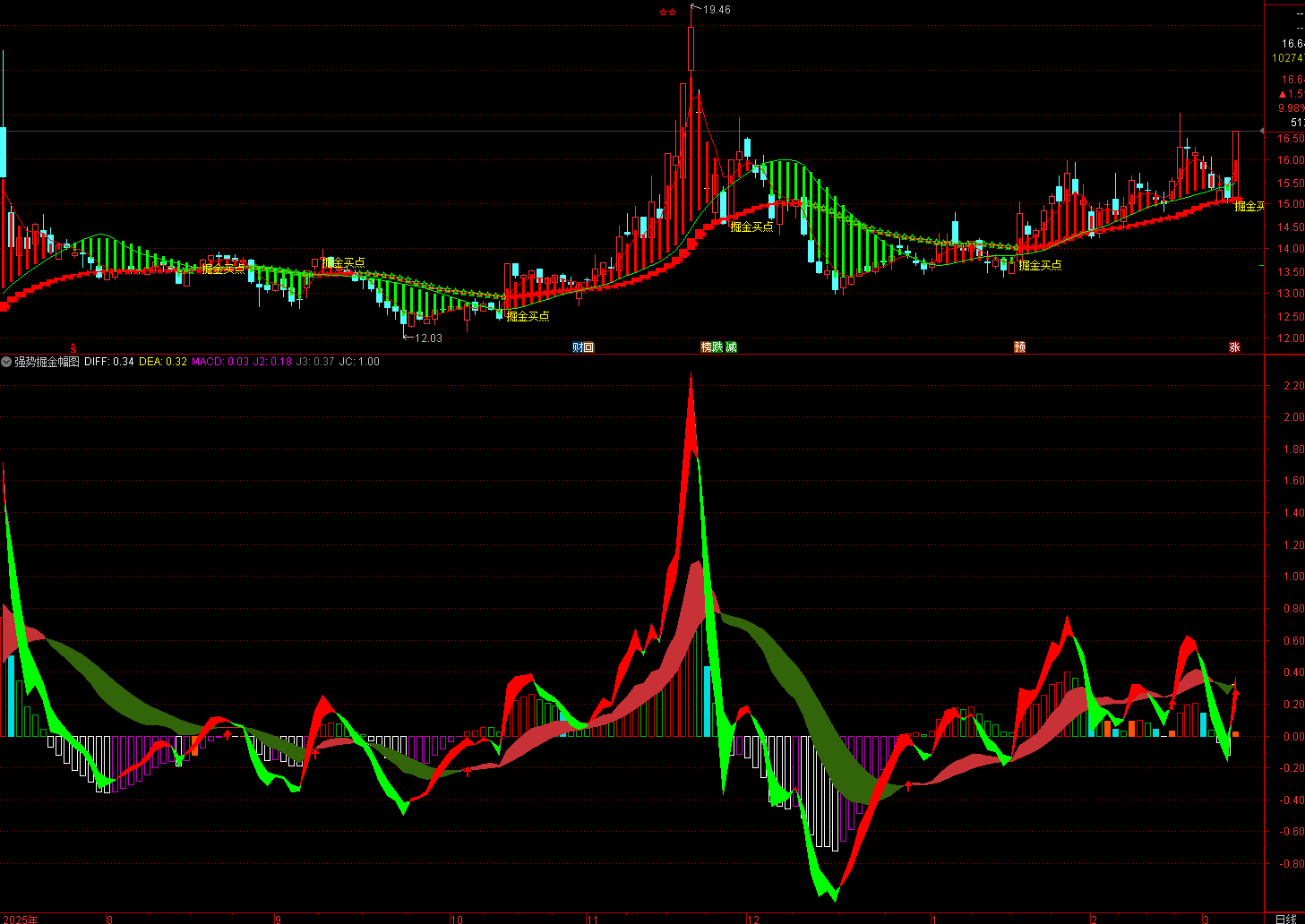5.幅图指标模块使用的是多指标共振系统,通过多指标联动机制发现多指标共振金叉行情的出现。
