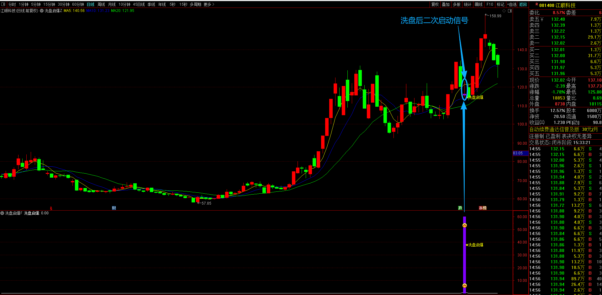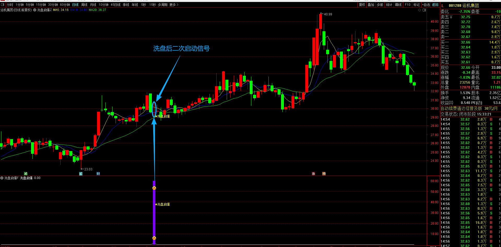 (通达信【洗盘启爆】主副图选股指标 专注于捕捉涨停后洗盘企稳信号的短线买入策略回调后的二次上车机会 无未来函数手机电脑通用)