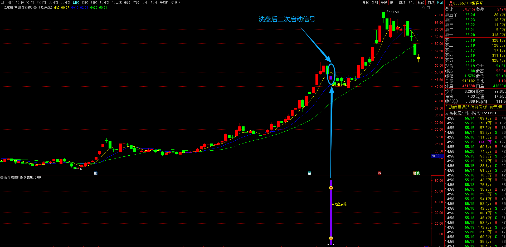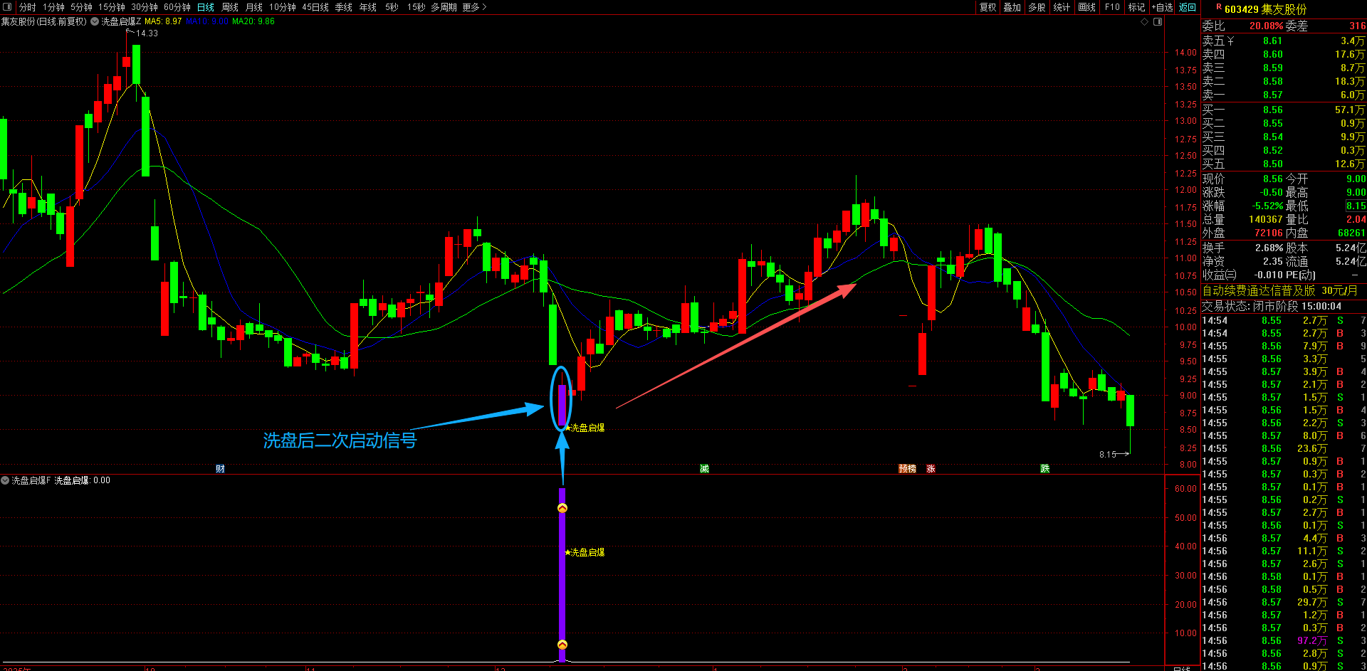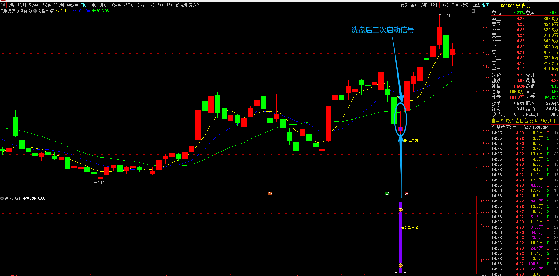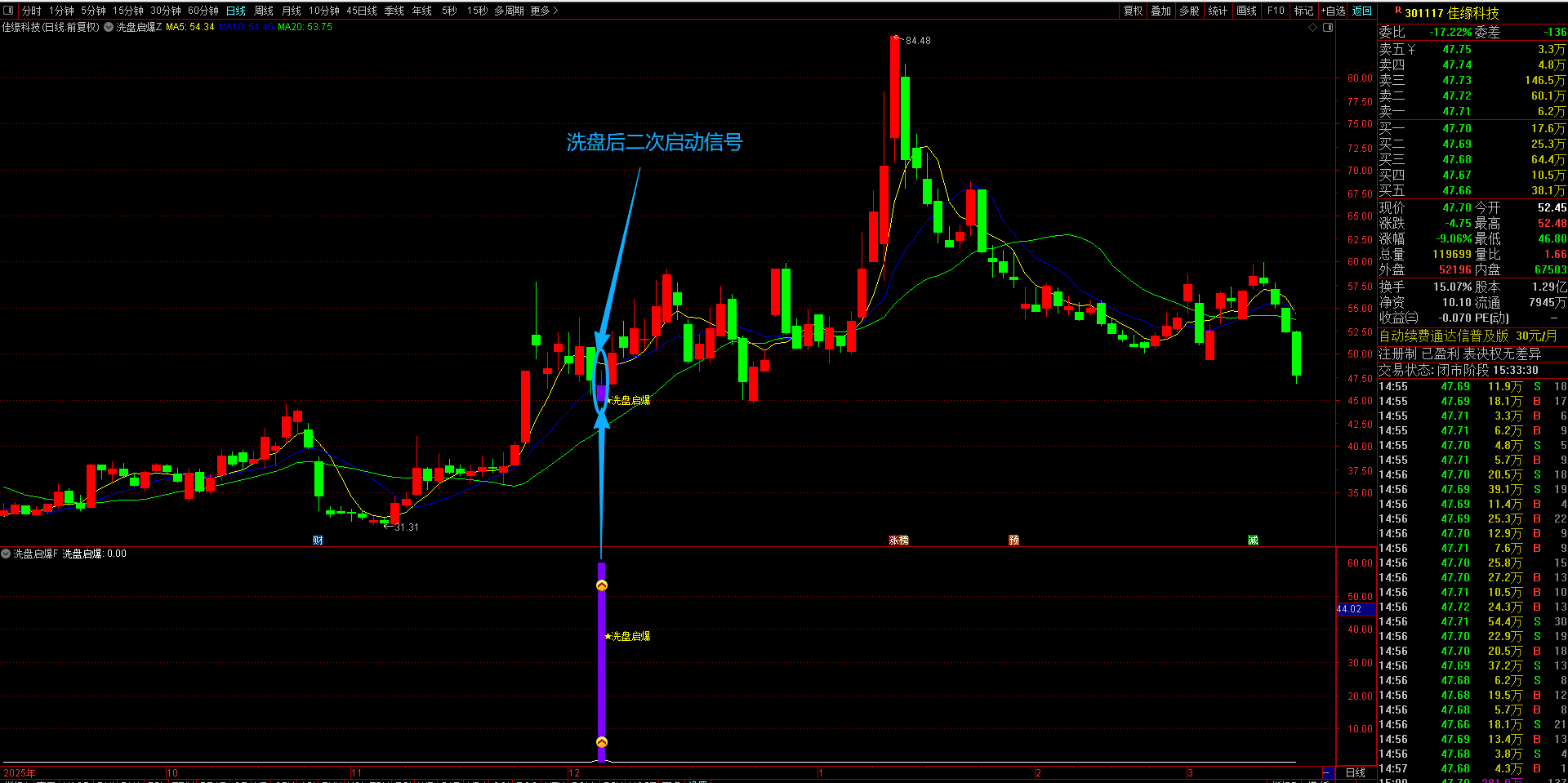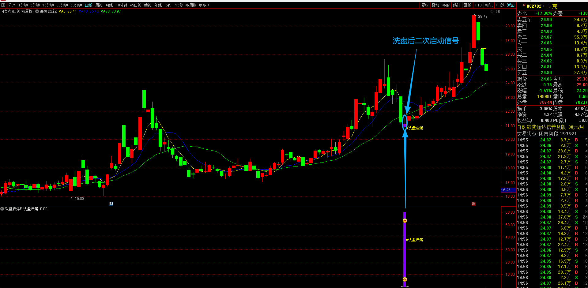通达信【洗盘启爆】主副图选股指标 专注于捕捉涨停后洗盘企稳信号的短线买入策略回调后的二次上车机会 无未来函数手机电脑通用