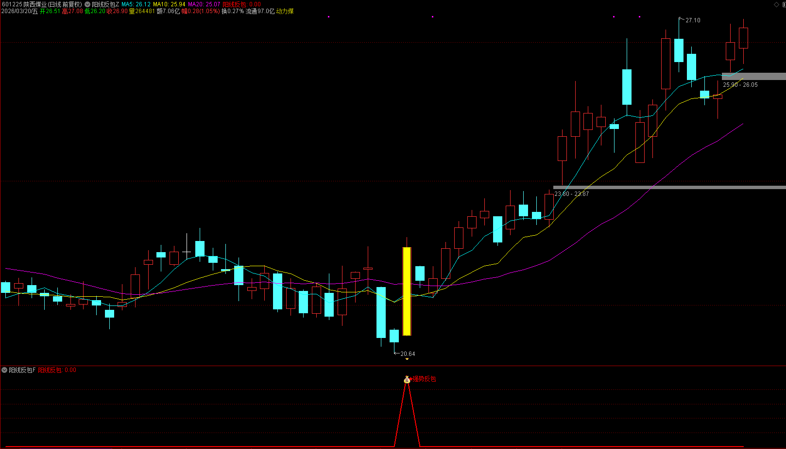 (通达信【阳线强势反包】主副图选股 大阳线反包形态抓短线强势反转)