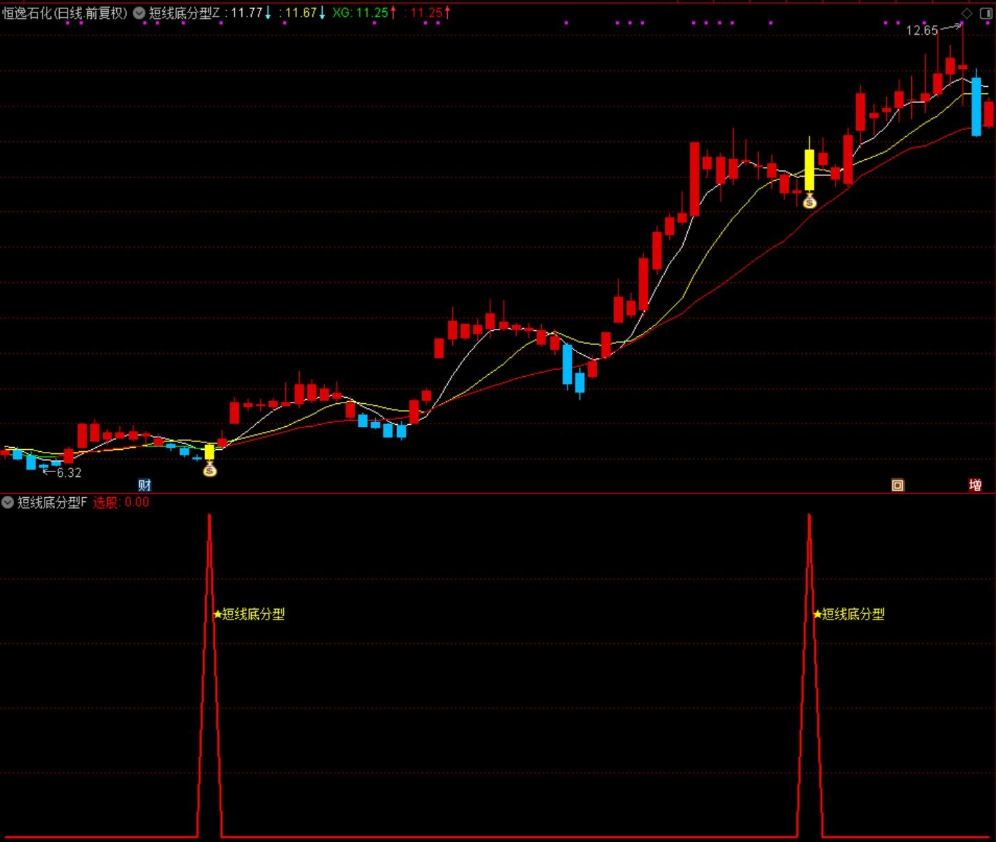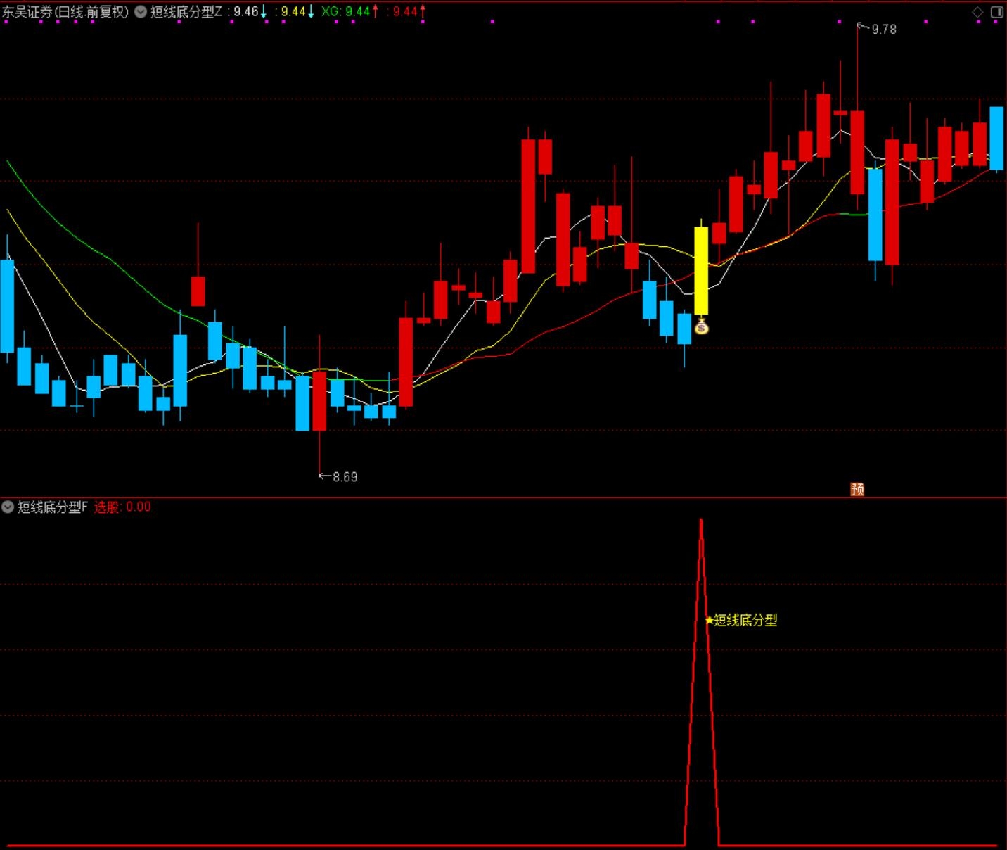 (通达信【短线底分型】主副图选股指标 适用于震荡市或上升趋势中的回调阶段的反弹 源码无未来函数)