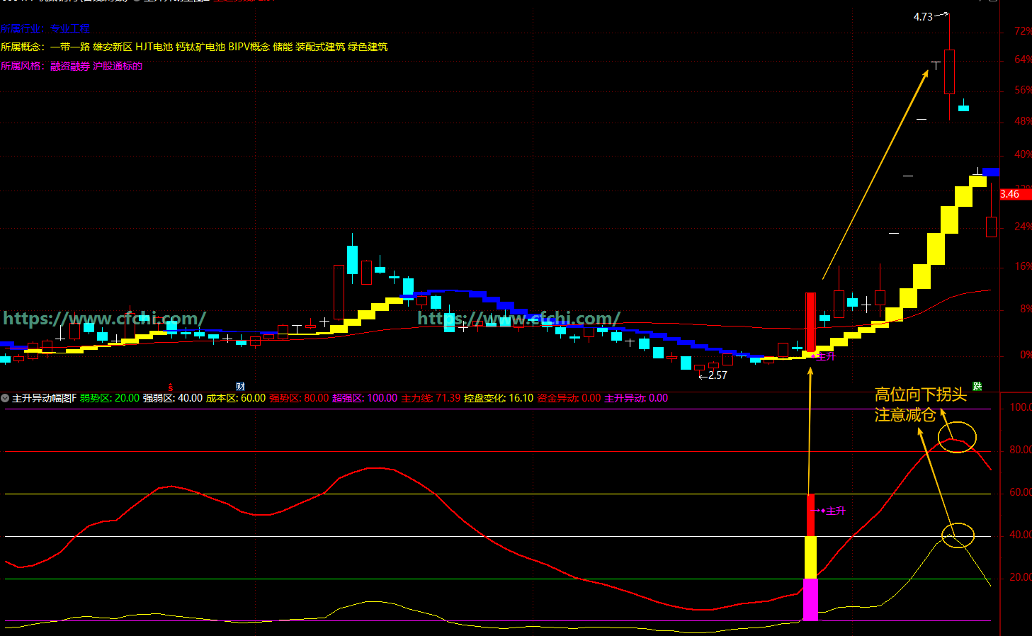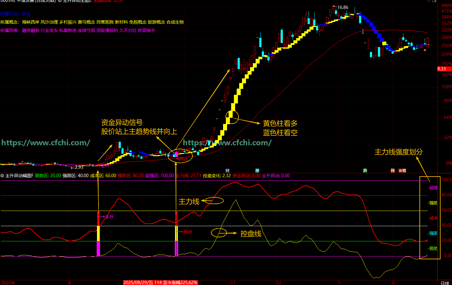 (通达信【主升资金异动】指标1主图1幅图3选股、趋势跟踪判断、资金异动和主升浪信号、不含未来函数)
