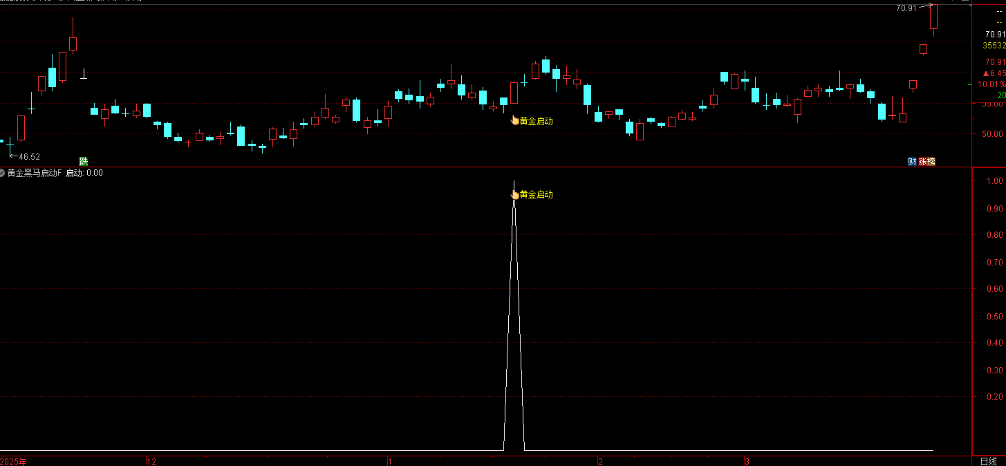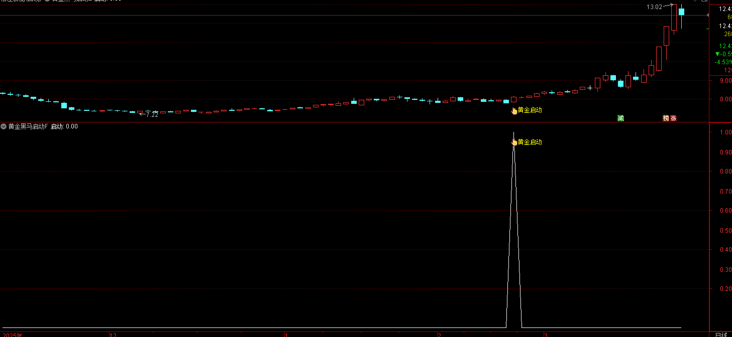 (通达信【黄金黑马启动】指标 参考使用 这是一个高胜率、无未来、信号干净的均线 + 量能共振启动指标,)