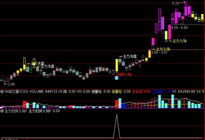(通达信 主力扫货入场 主 副 选指标 短期中期转强)