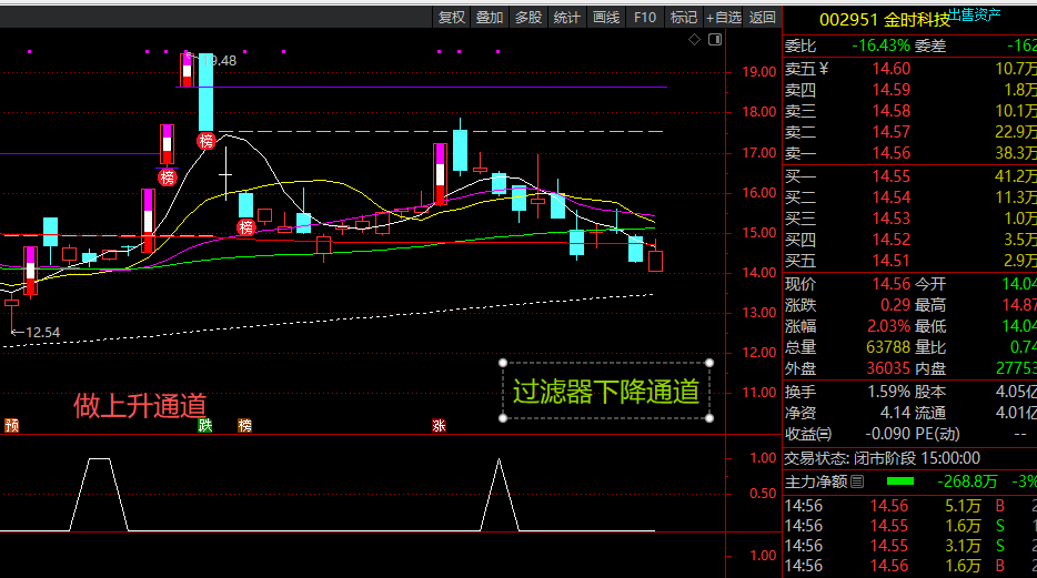 通达信金色K线持股,蓝色K线持币 ;下跌通道抢反弹,最好是金K线开始出现和道线红色