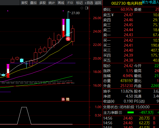 (单龙回头.下午14.55出信号尾盘.买.前面涨停板选择在上升第一浪)