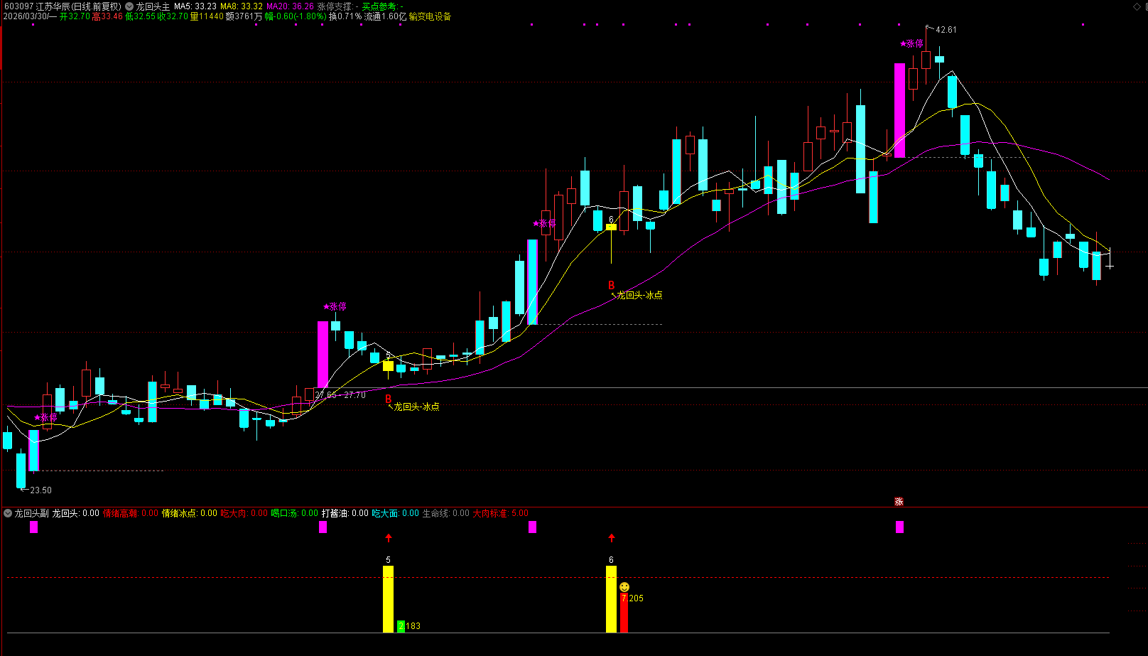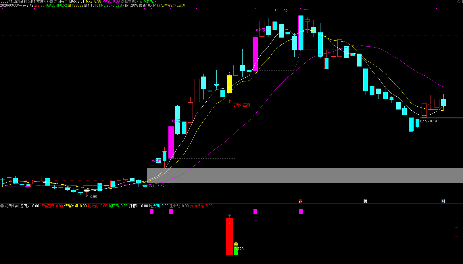 (通达信精品【2026龙回头战法】主副图选股 尾买策略, 胜率高,无未来,手机+电脑)