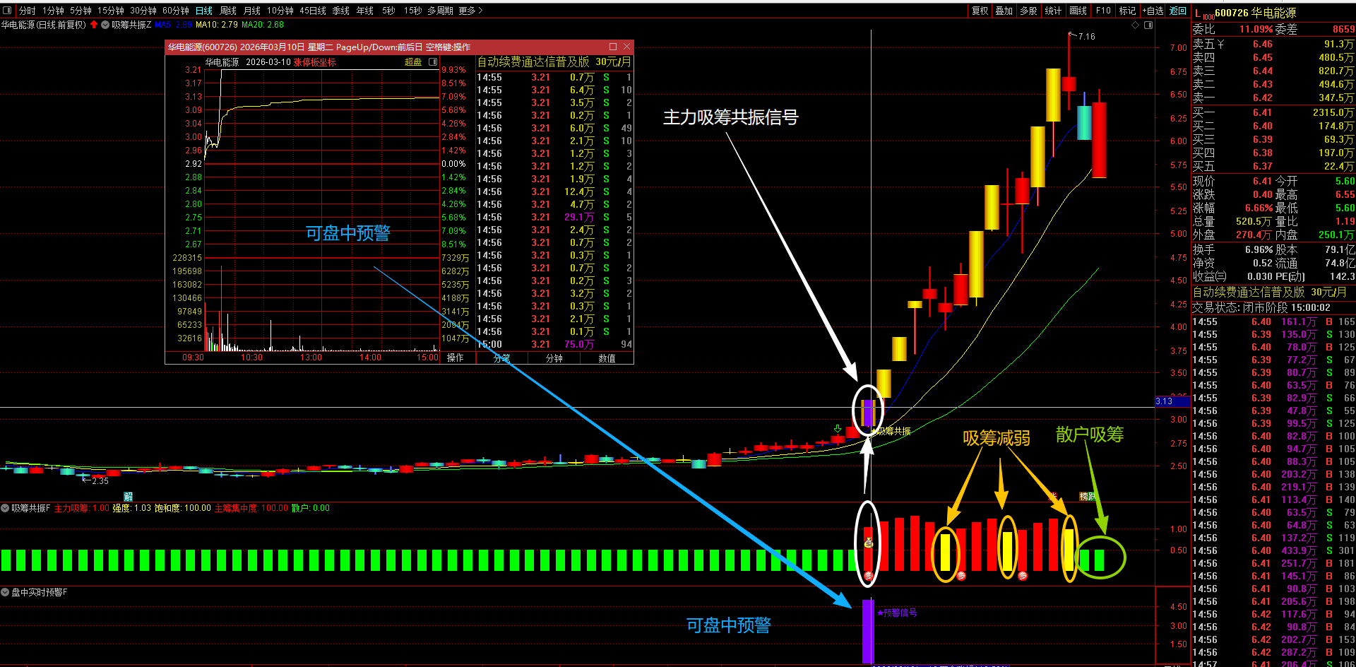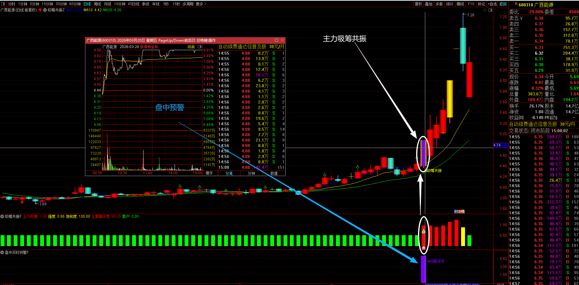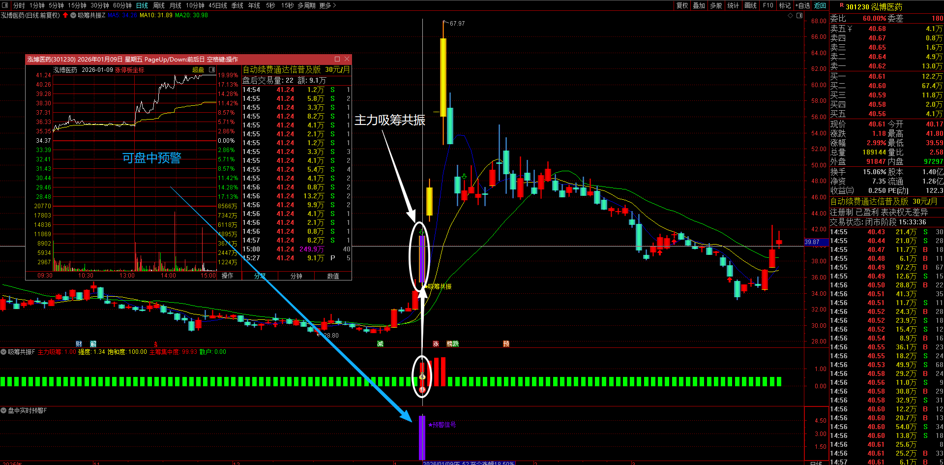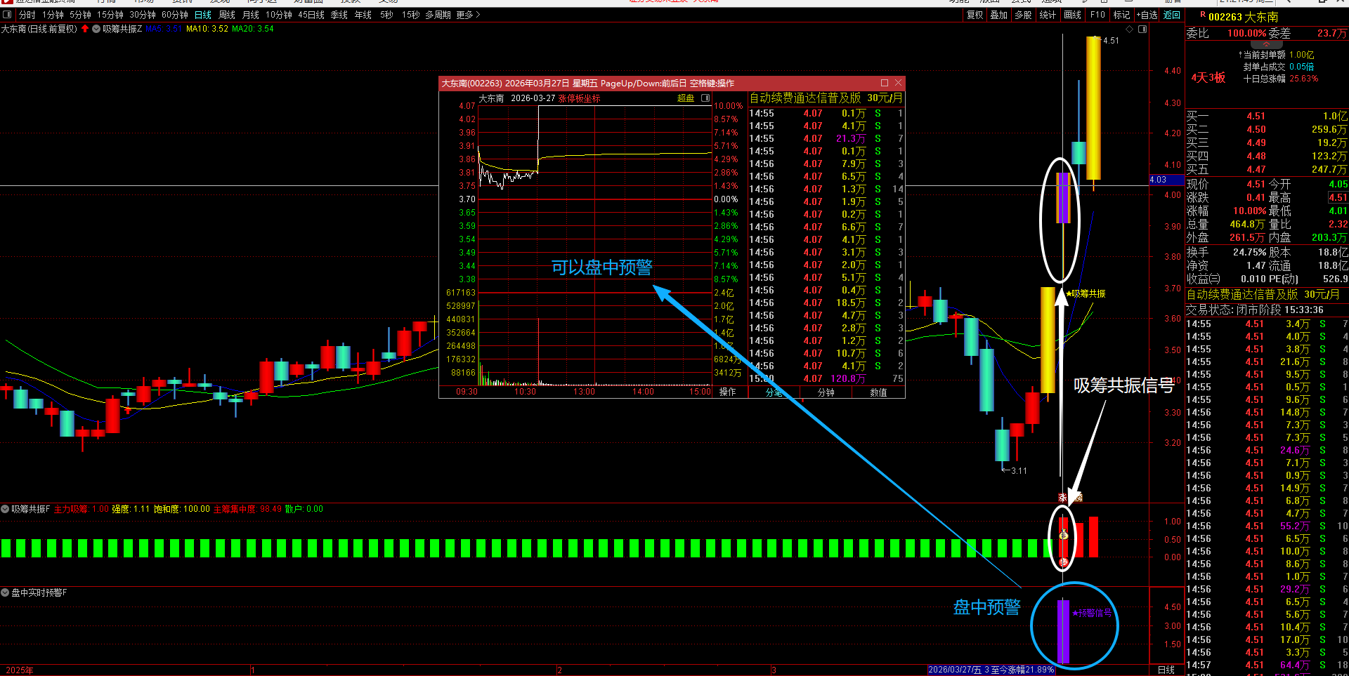 通达信【分时操盘套装指标】(分时操盘主图指标,分时量堆幅图+选股预警指标)