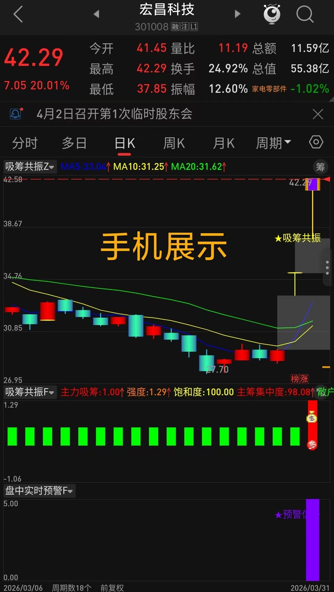 选出的股票 = 当天出现【红色主力吸筹柱 + 超强共振信号】