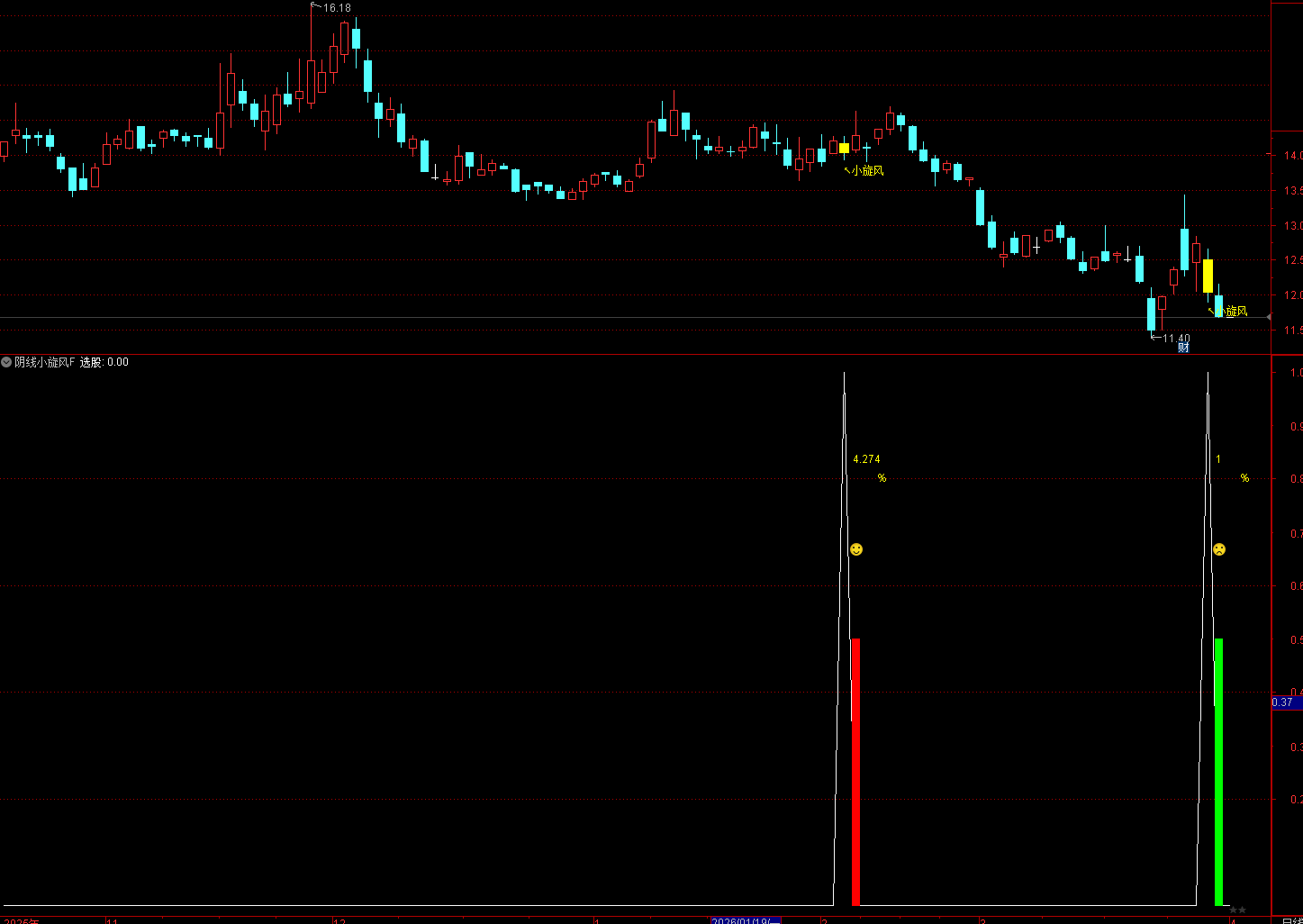 形态:阳 → 阴 → 小阳旋风 → 今日阴线回踩