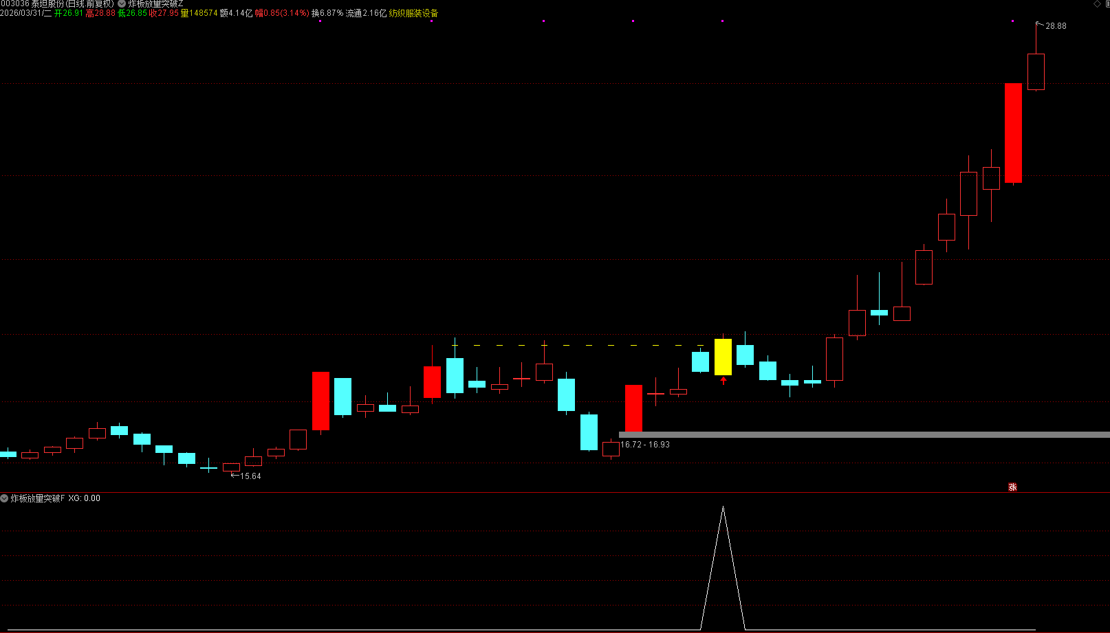 当震荡洗盘结束,股价放量突破炸板当日最高点时,即为最佳介入信号。一旦有效突破,意味着炸板当日被套的资金全部解套。主力耗费巨资解放套牢盘,绝非为了做慈善,其目标往往是突破之后更广阔的上涨空间,这通常是主升浪开启的标志。