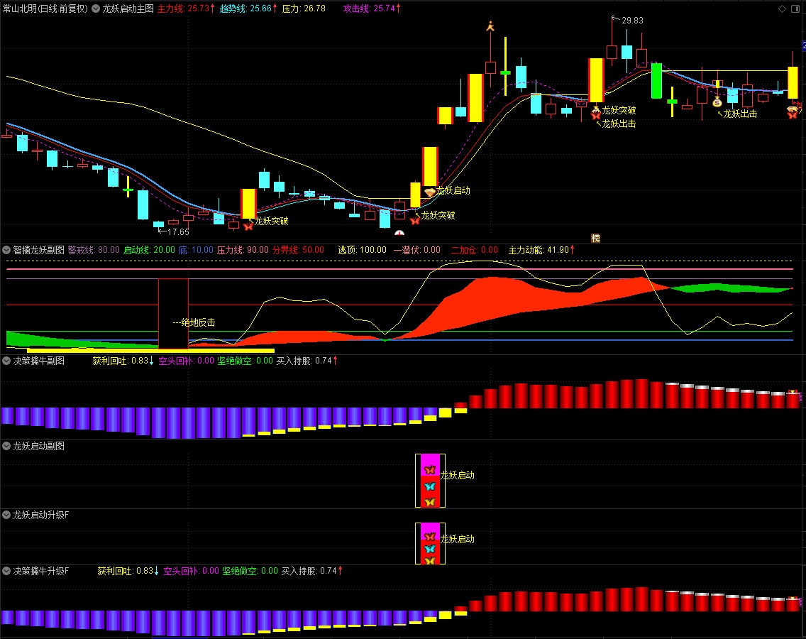 (通达信《龙妖启动》指标套装,实战优化版、电脑手机通用!源码指标分享)