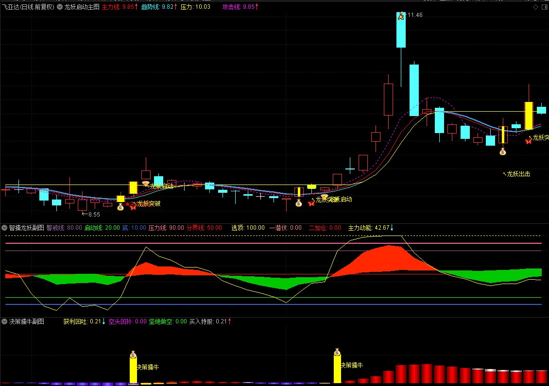 ②加入了决策擒牛信号,信号比龙妖启动早出信号,可以提前判断!