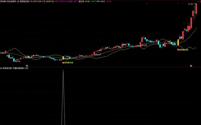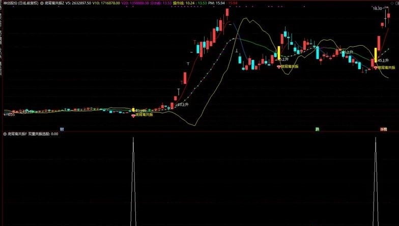 核心优势的是“趋势+共振”双重验证,既通过∠45上升信号识别稳健趋势,又通过底背离+三底背离共振捕捉精准买点,同时搭配趋势线、均线变色辅助判断,直观易懂、实用性强。适合中短线投资者使用,重点关注“底背离共振”信号,结合量能和趋势确认,可有效提升操作成功率。
