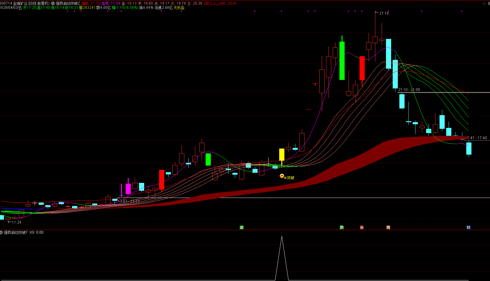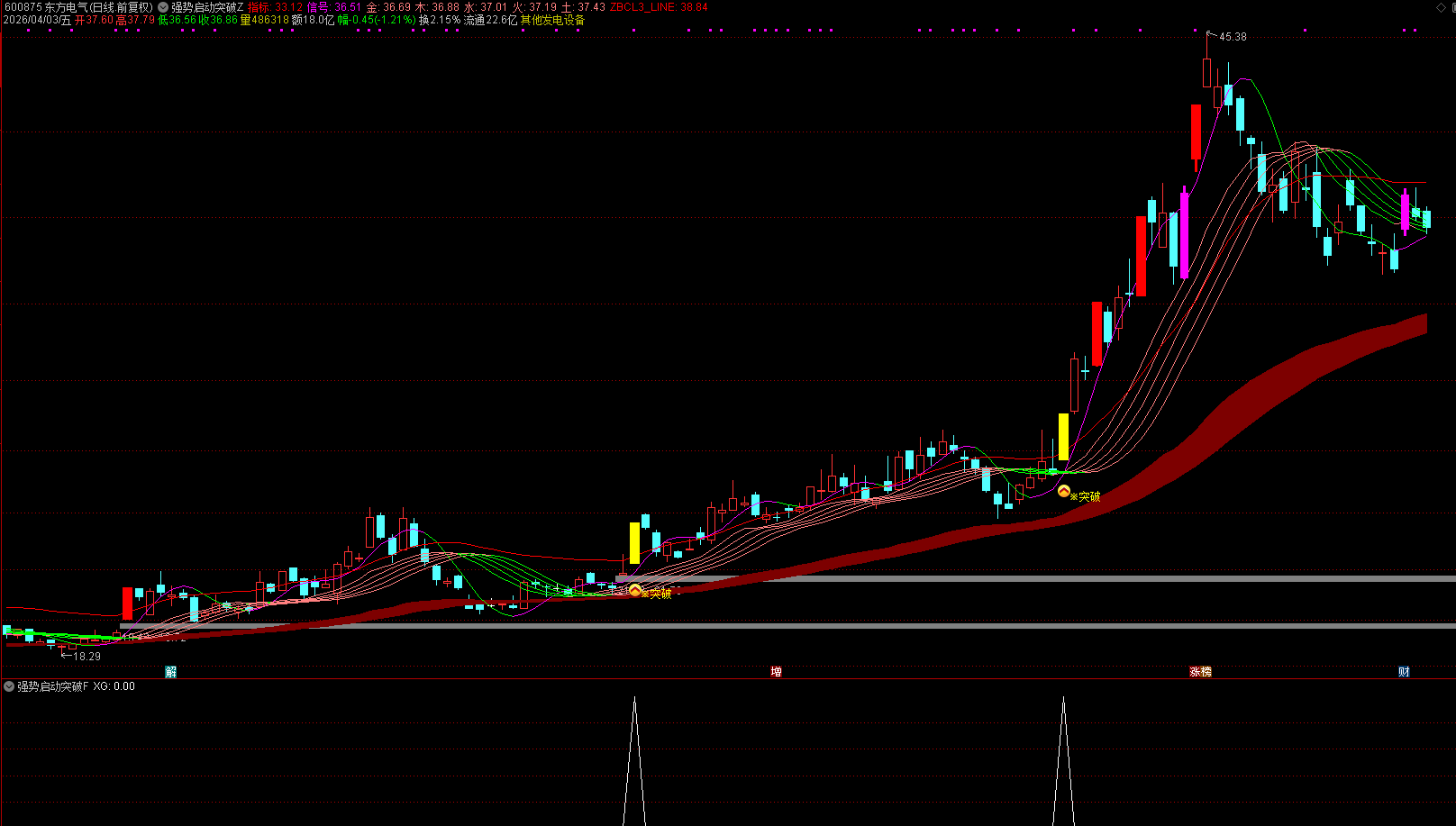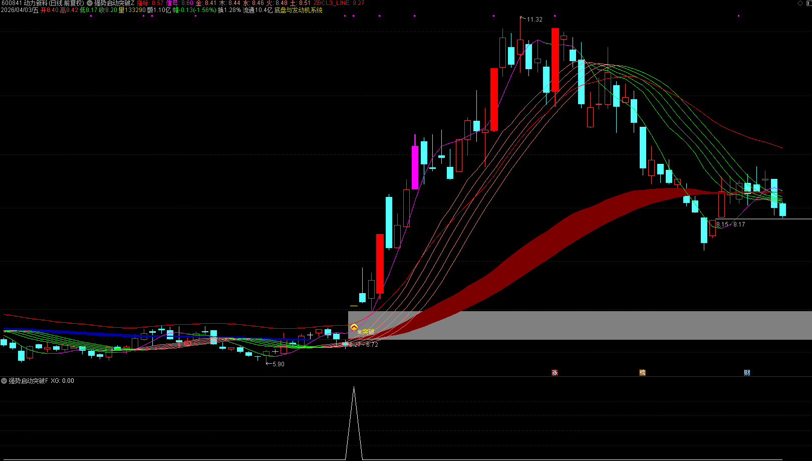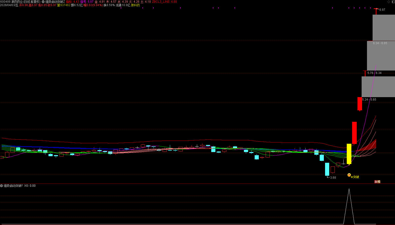 信号逻辑:股价突破主力成本线 + 强势涨停形态 + 多重指标共振;