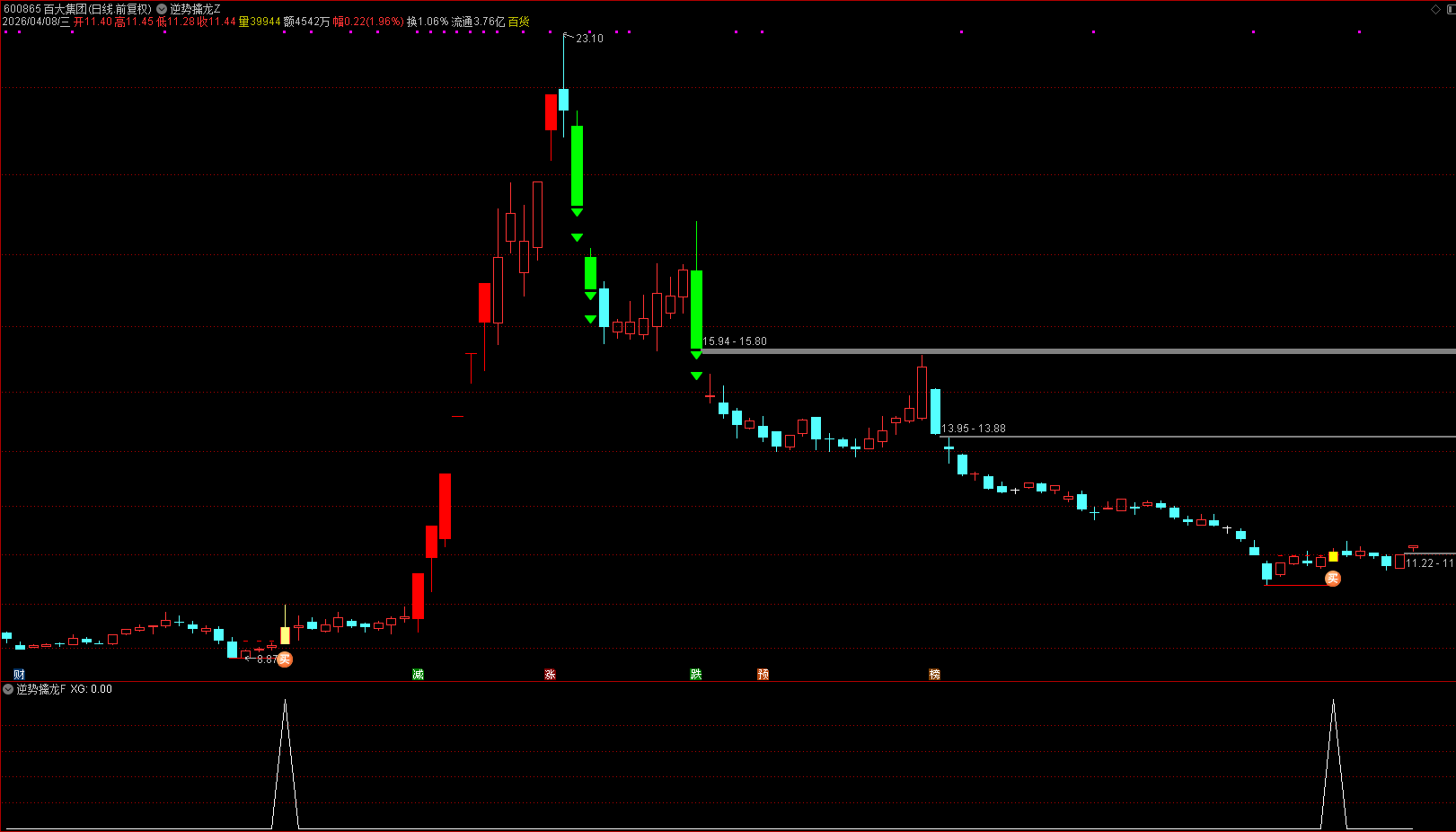 (通达信【阴跌逆势擒龙】主副图选股 缩量阴跌放量阳突破,逆势捕捉主升启动)