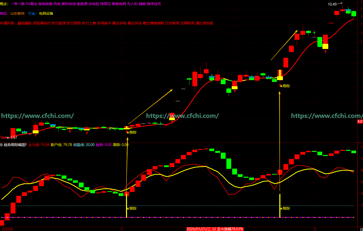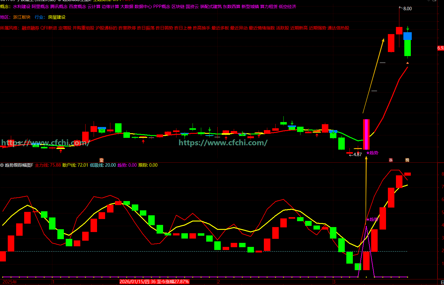 (通达信【趋势跟踪】指标趋势判断、形态识别、买卖信号提示技术分析的综合性指标)
