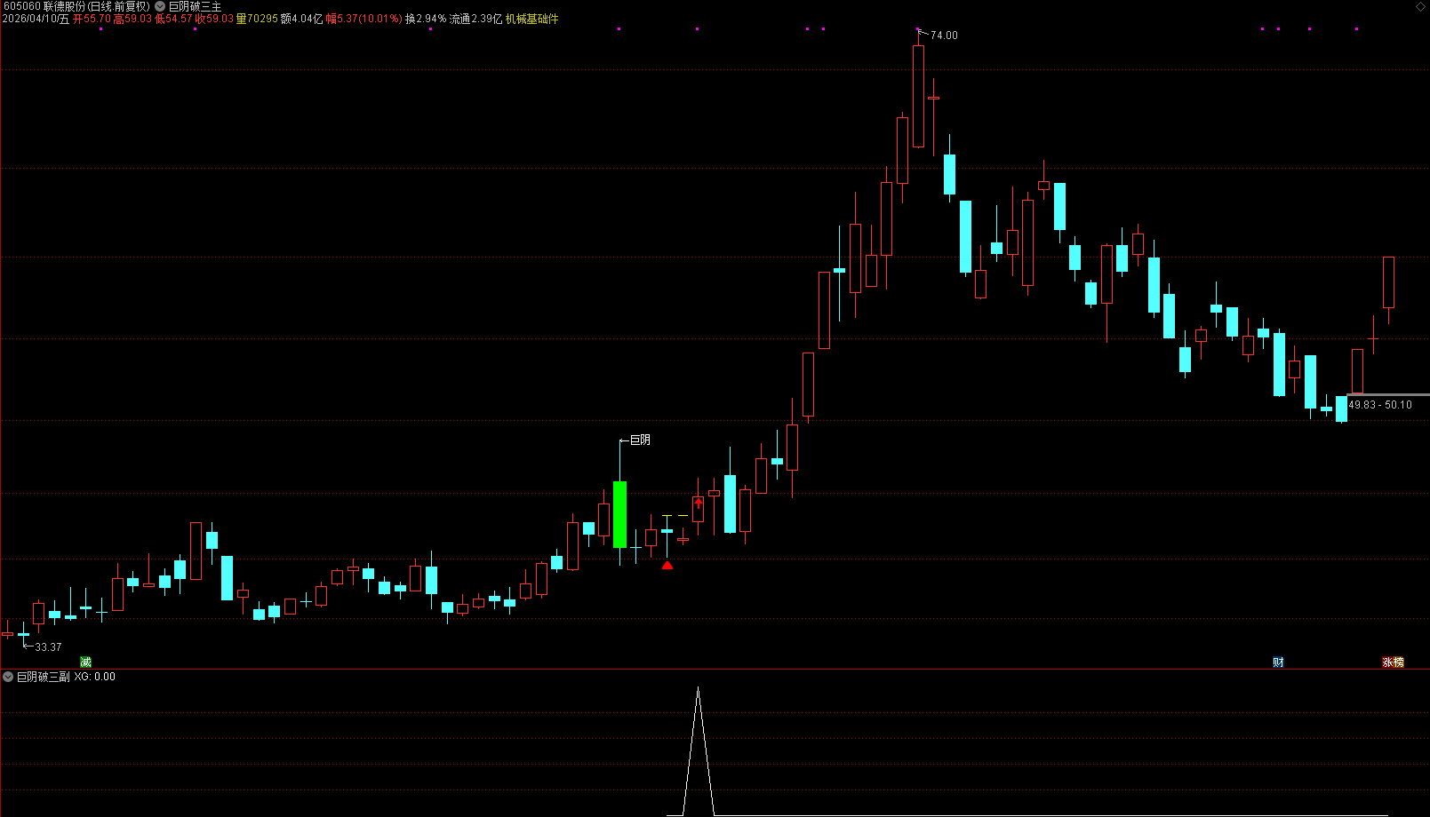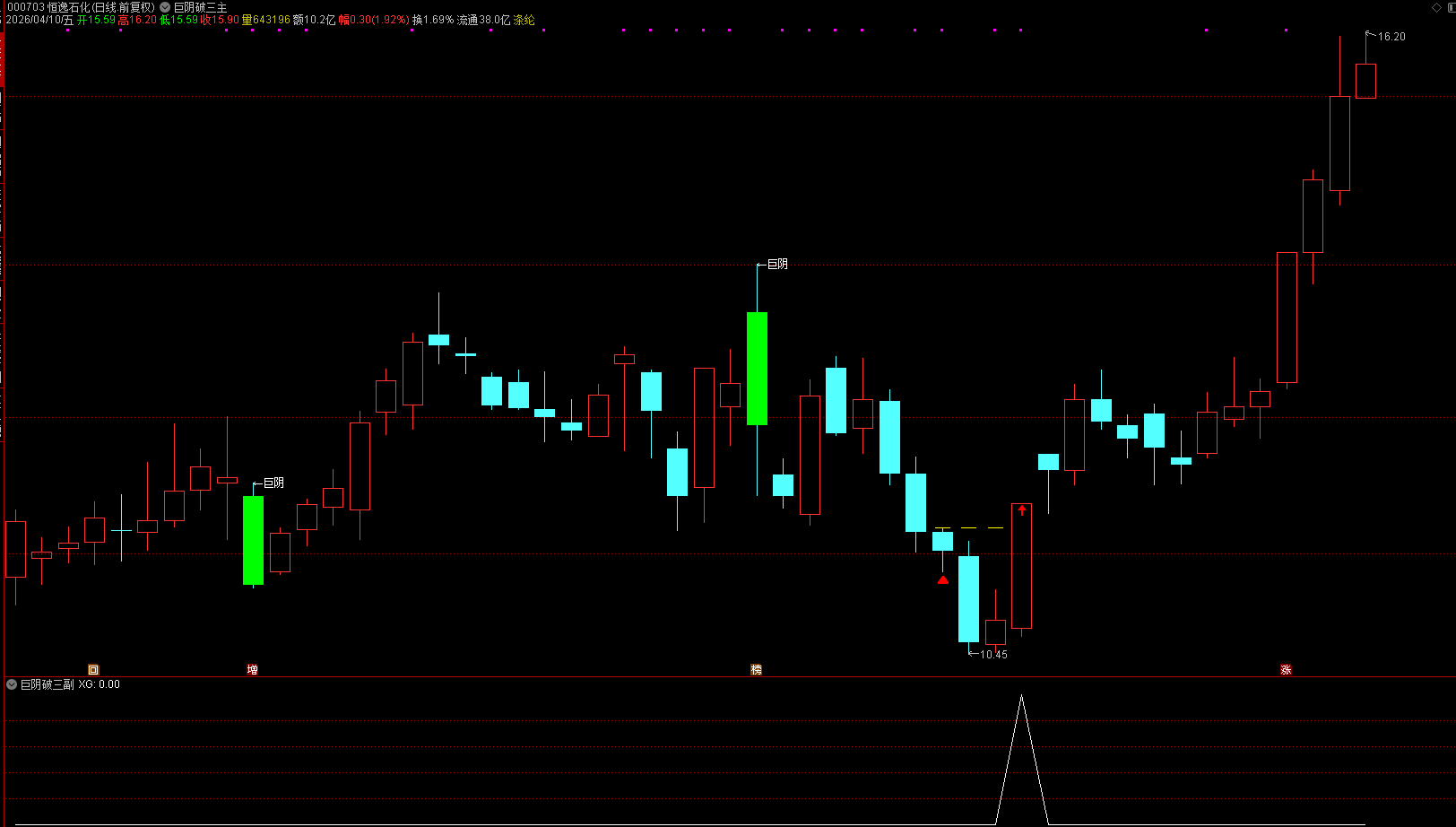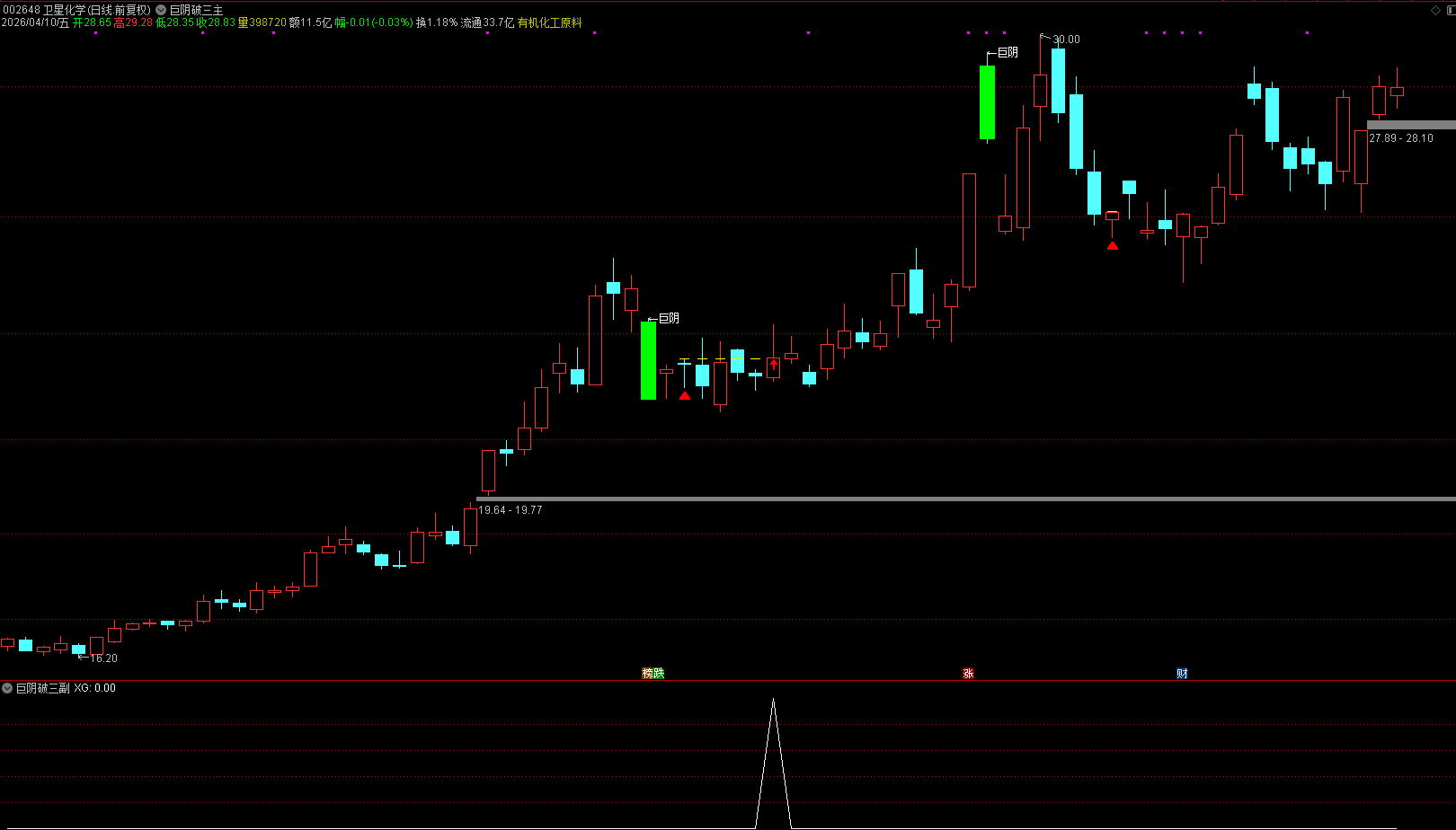 风险控制:结合大盘环境、个股趋势使用,不单独作为买入依据,跌破巨阴最低价止损。