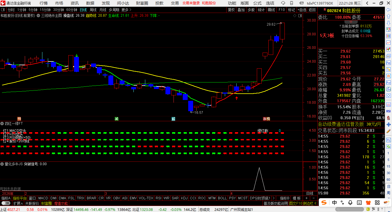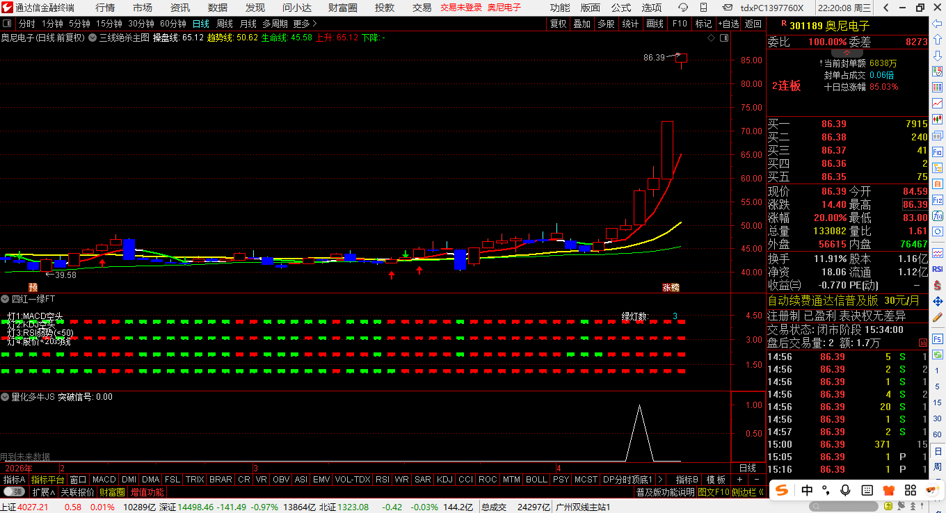 通达信【暴力涨停拉升】套装优化版指标公式:预测个股暴力涨停拉升可能性 源码文件分享
