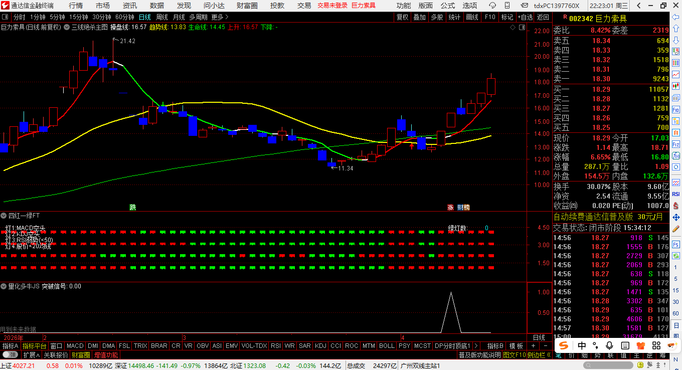 通达信更新版主力资金突破主副图+选股预警全套指标公式 洞察主力资金趋势选股实战秘籍!源码分享!
