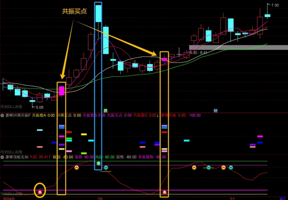 2.起涨初期,多种经典指标的共振看多买点,即共振买点,在这三个买点中胜率相对较高。