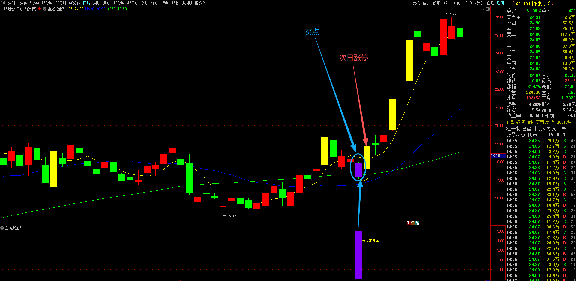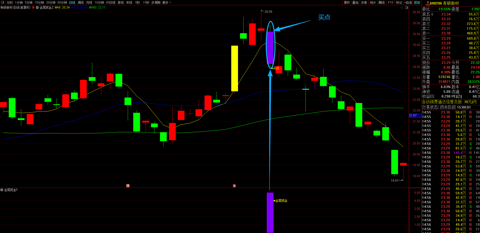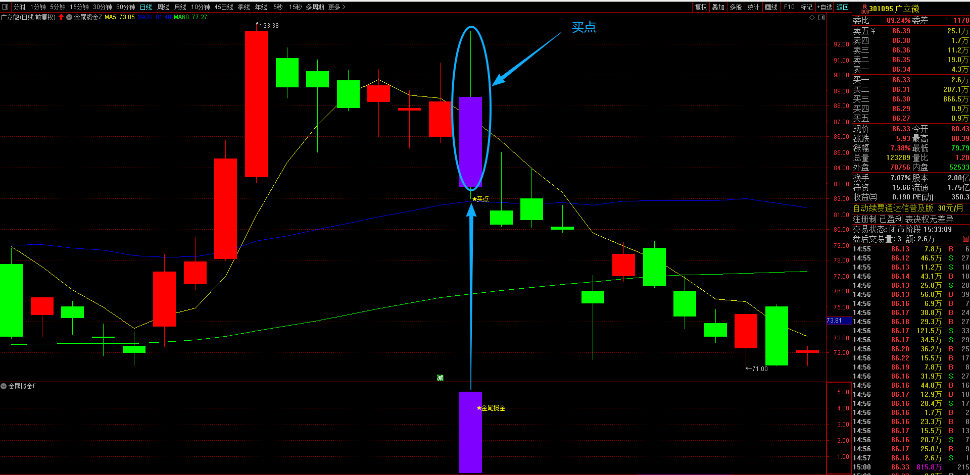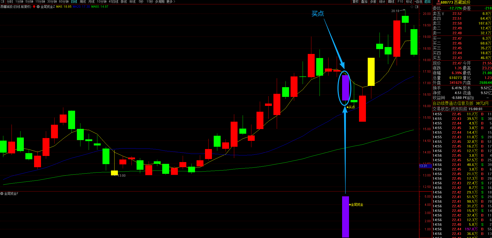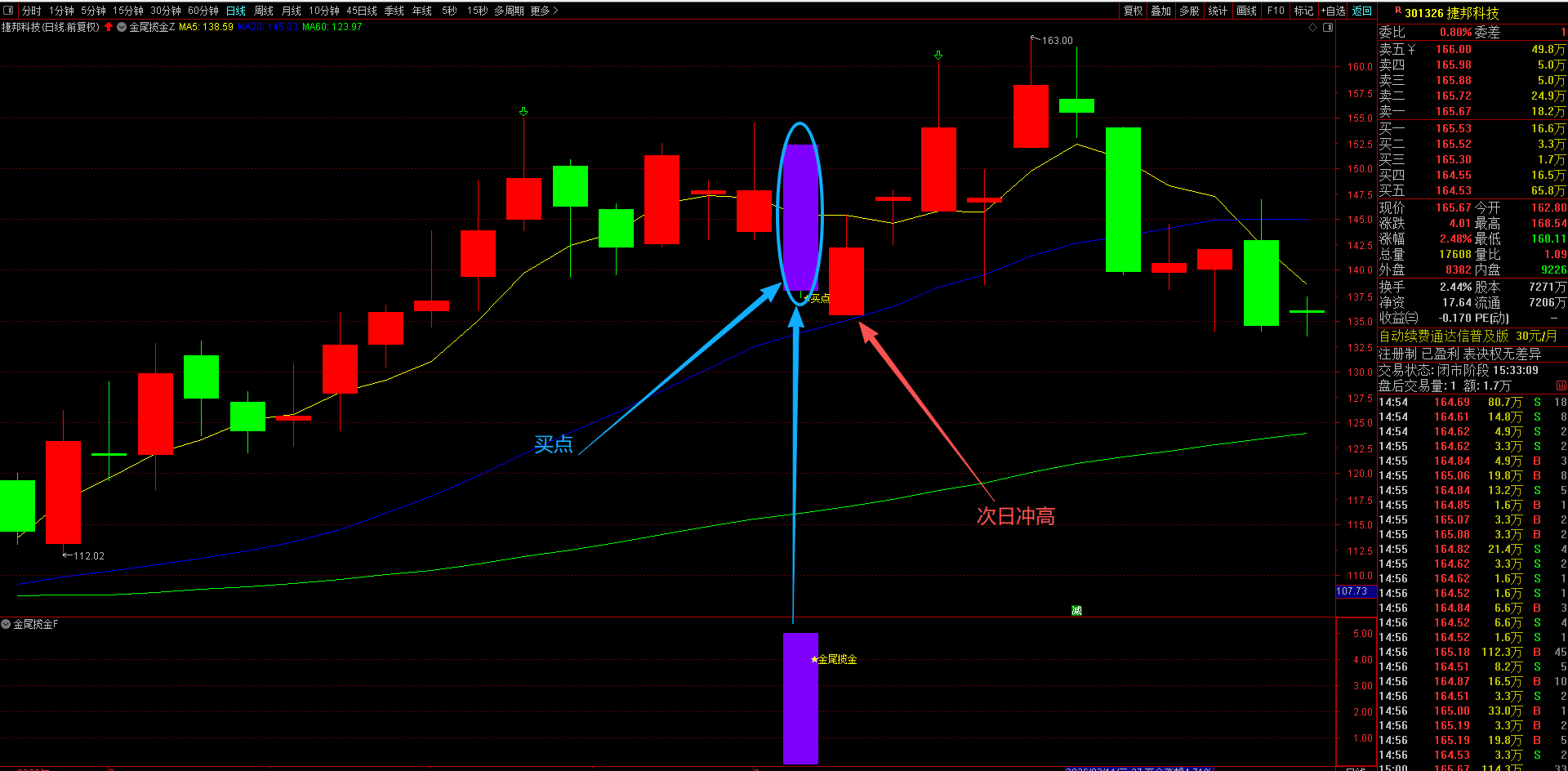 通达信【金尾揽金】主副选指标 精准识别趋势股调整尾声的黄金信号,T+1高胜率战术 无未来函数手机电脑通达信通用