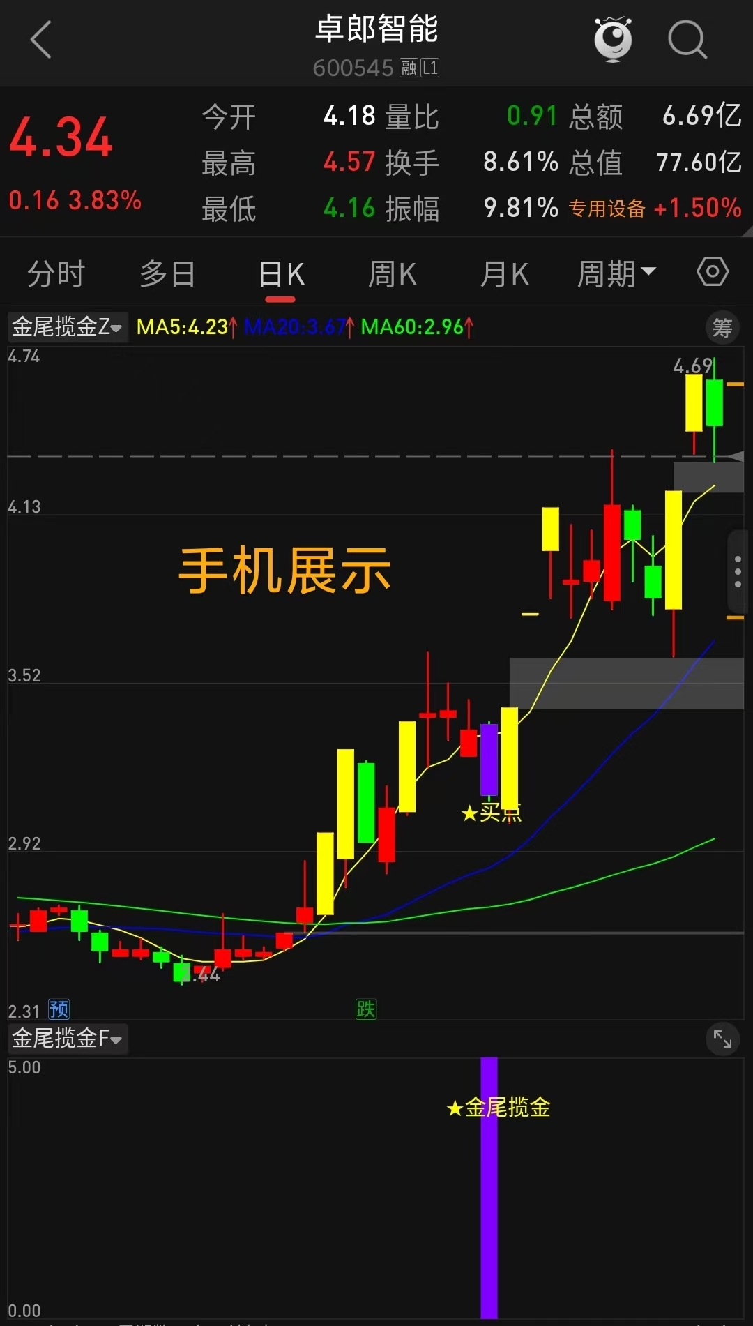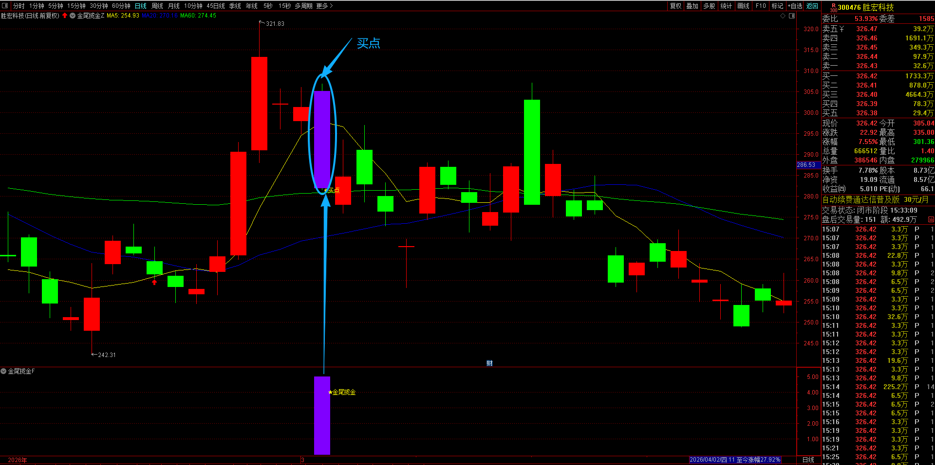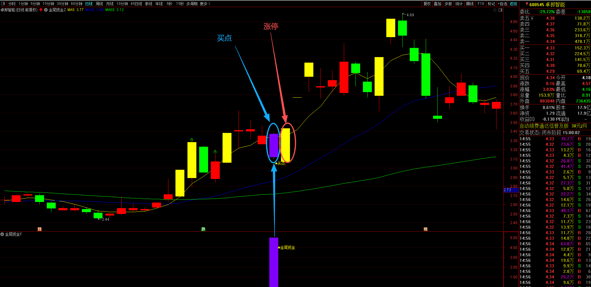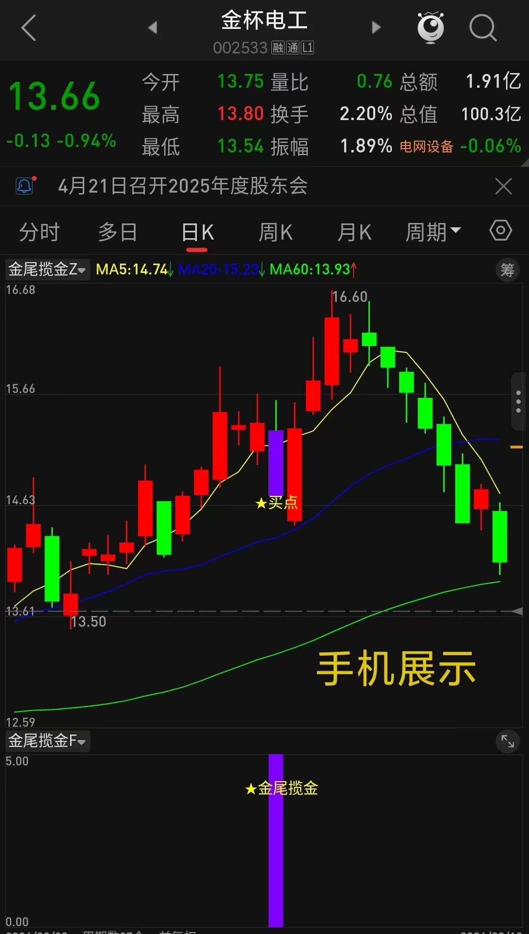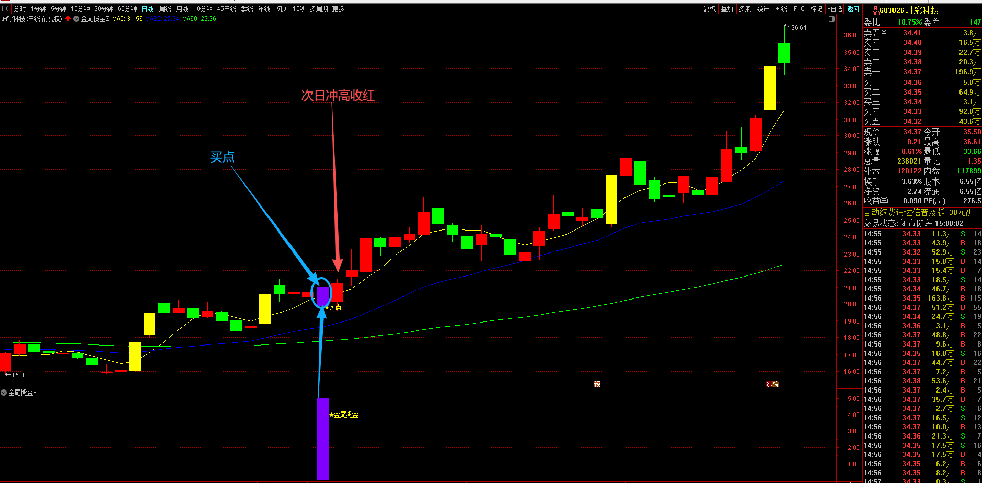通达信【金尾揽金】主副选指标 精准识别趋势股调整尾声的黄金信号,T+1高胜率战术 无未来函数手机电脑通达信通用