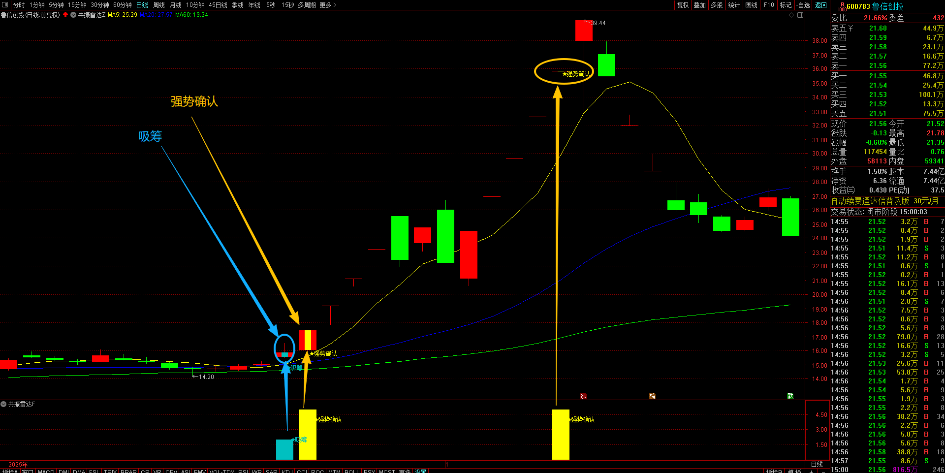★强势确认(黄柱):涨停确认信号,代表这只票不仅在低位,而且已经具备了强势股的涨停基因。