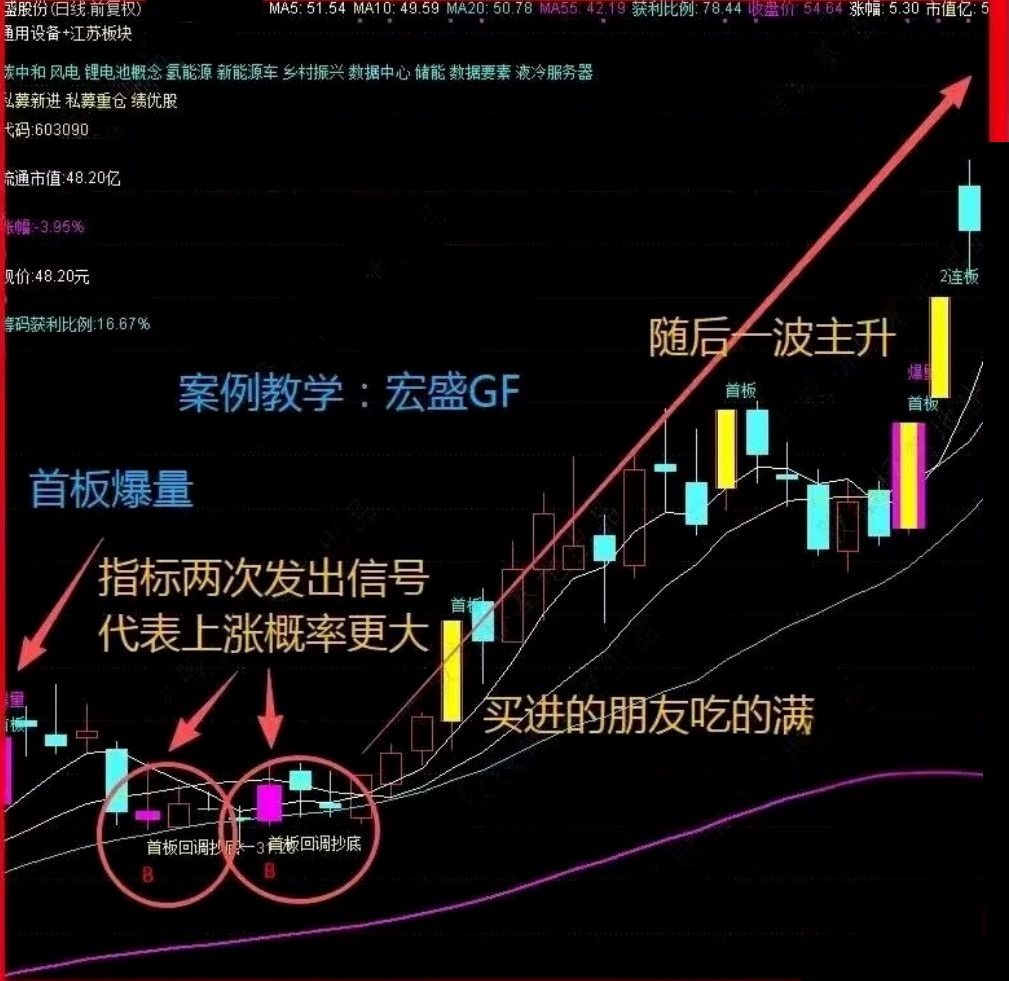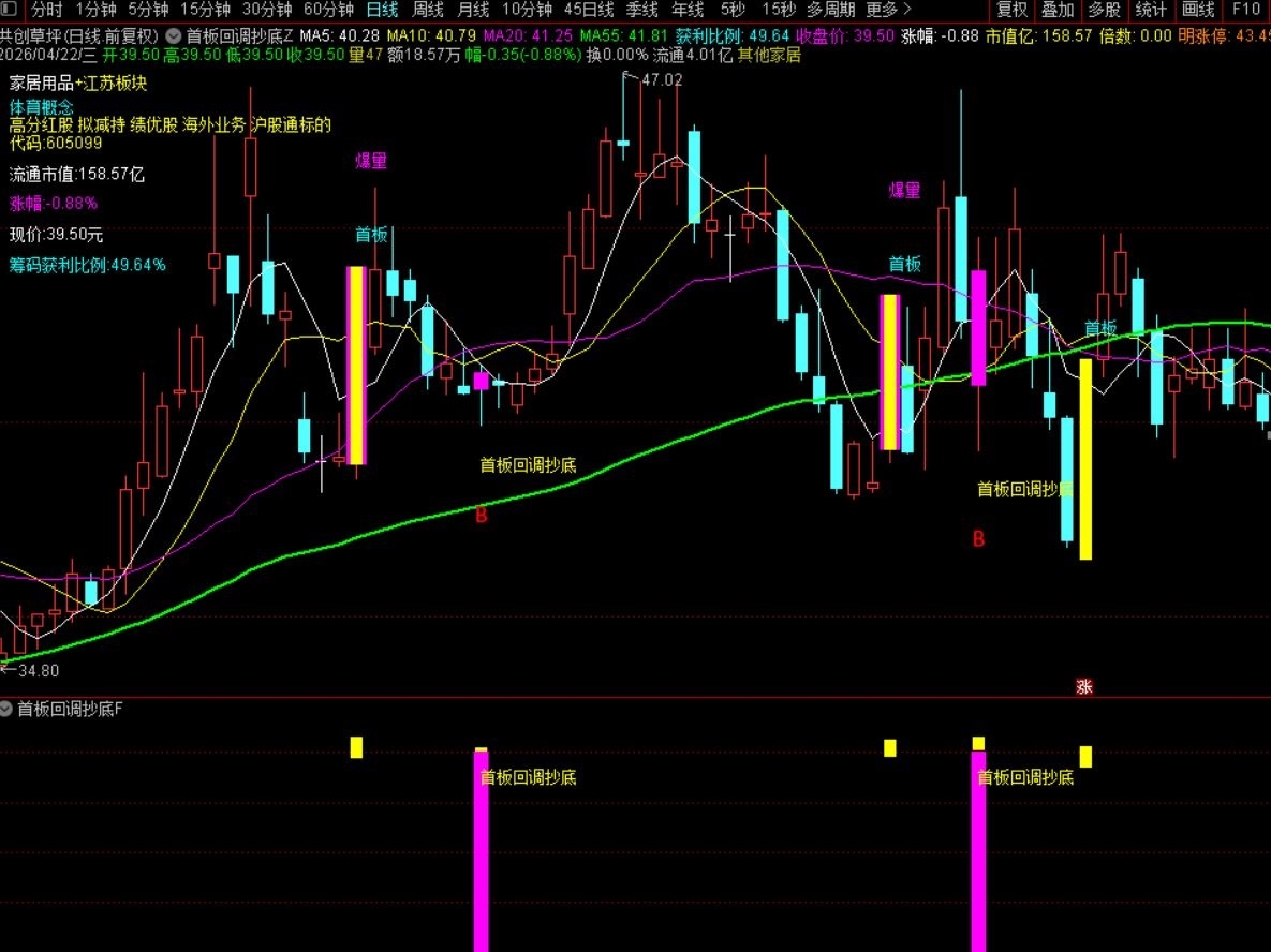 一旦满足止跌企稳条件,便会以醒目的“首板回调抄底”文字和图标在K线图上发出明确买入提示。