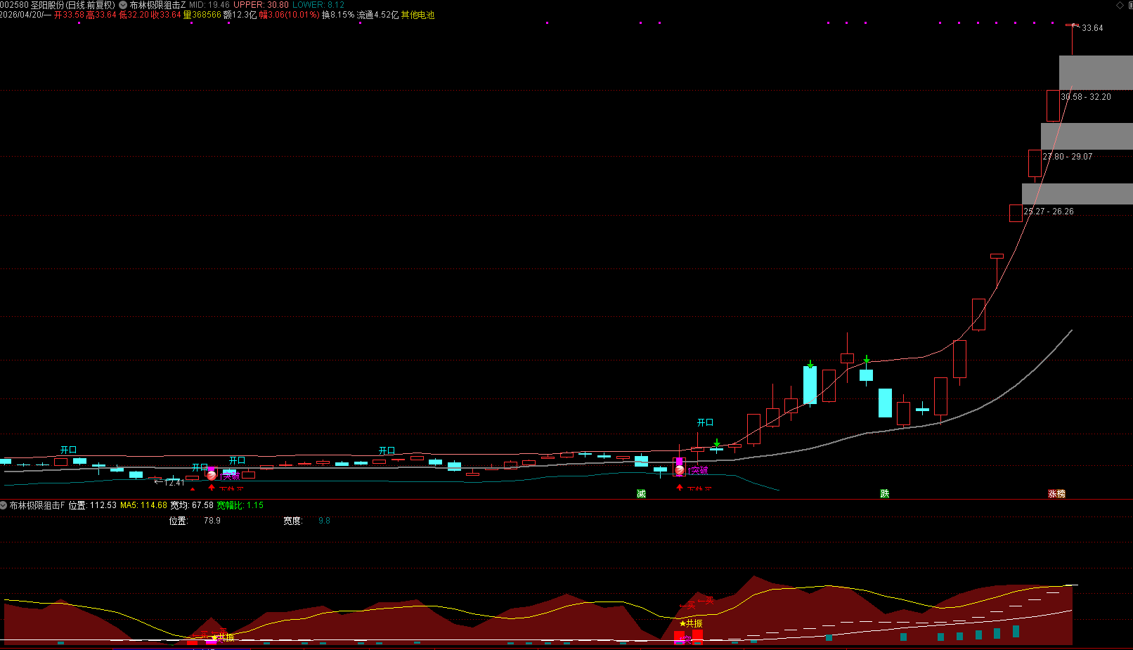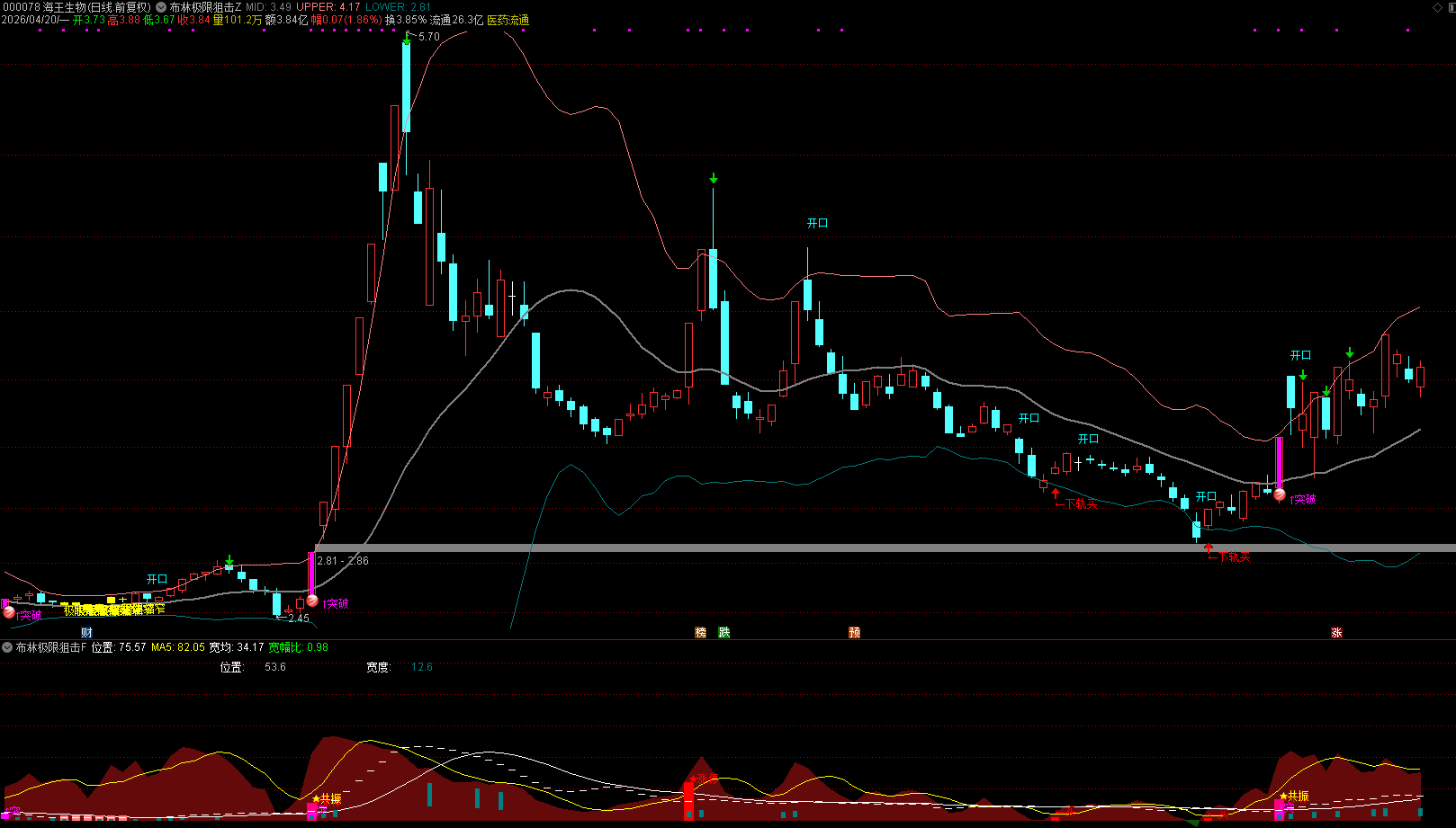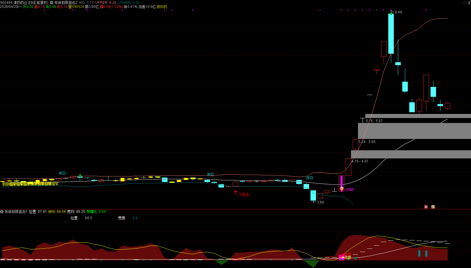 (通达信【布林极限狙击战法】主副图+4选股 布林带极限缩窄战法,抓主升浪的实战利器)