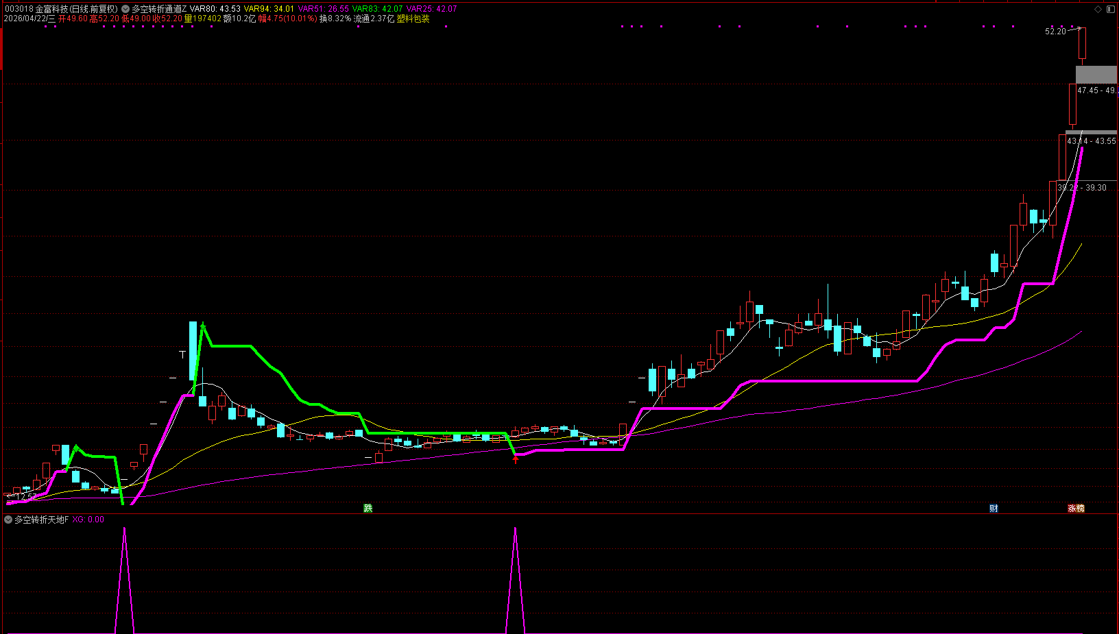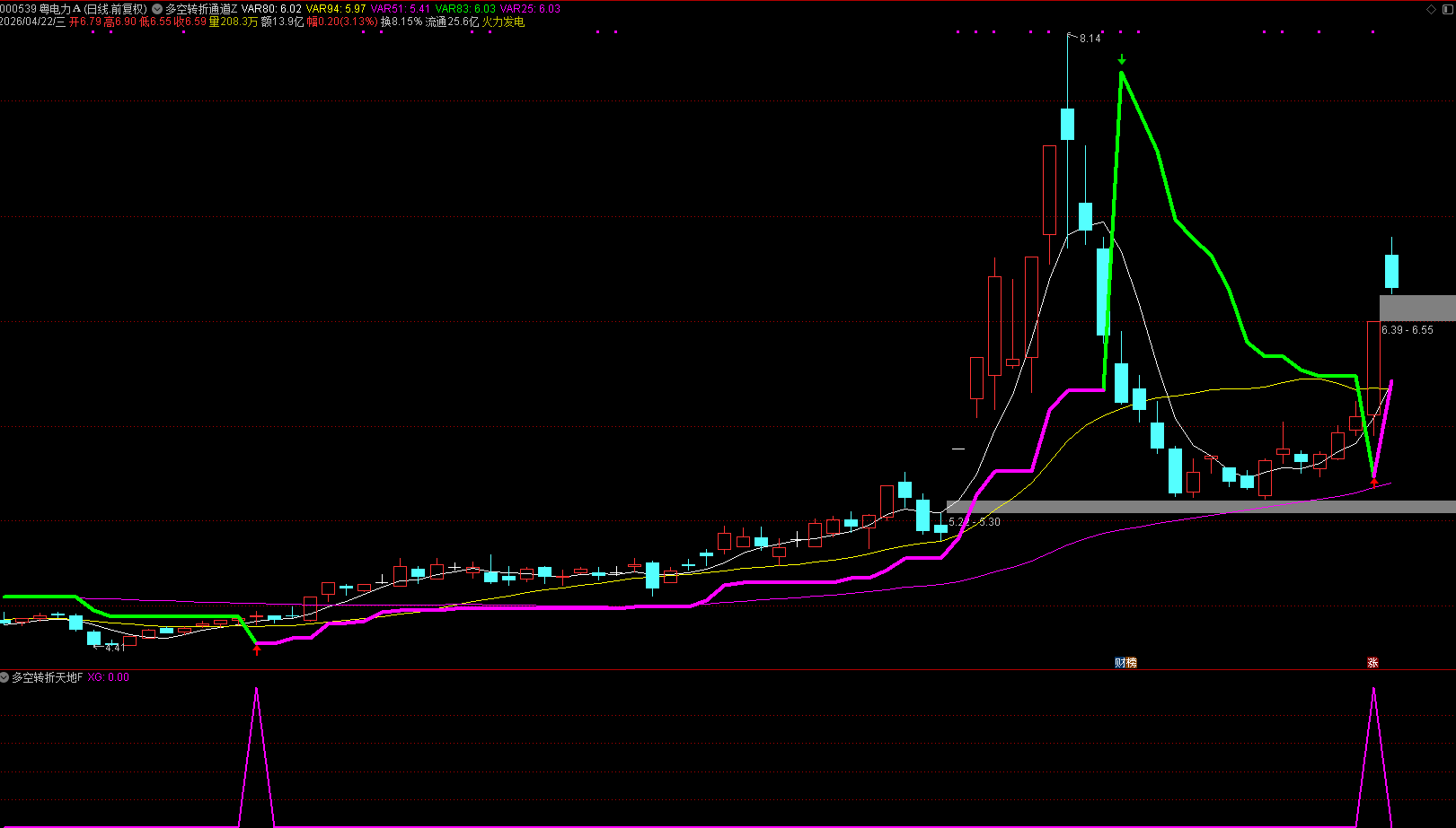 (通达信【多空转折通道】主副图选股 通道定趋势,识别多空转折点)