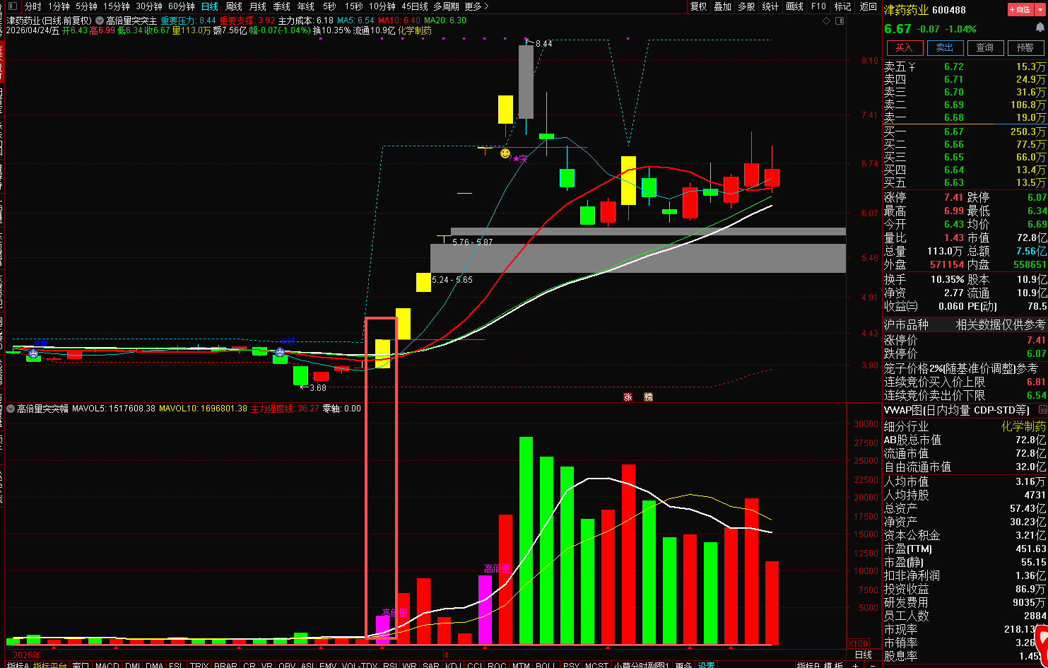(高倍量突突套装(主图+幅图+选股),幅图高倍量+主图突信号叠加,优选强势股)