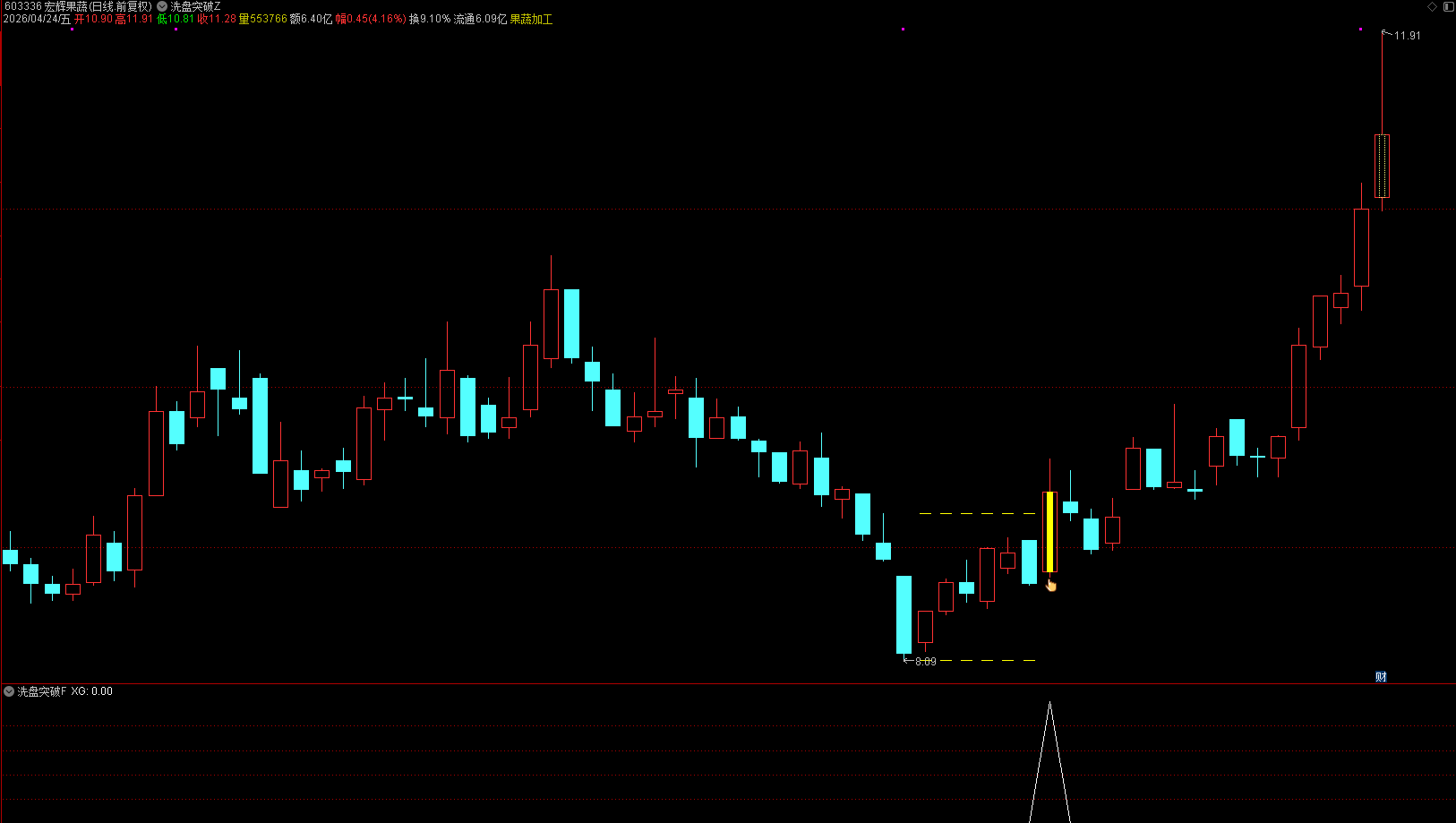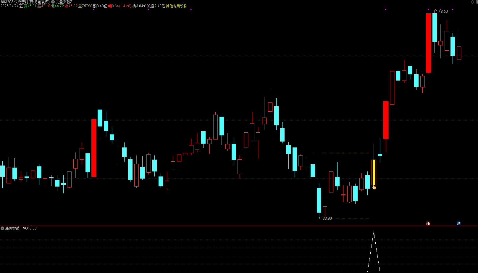 对应的选股也是选出黄色手指的位置;
