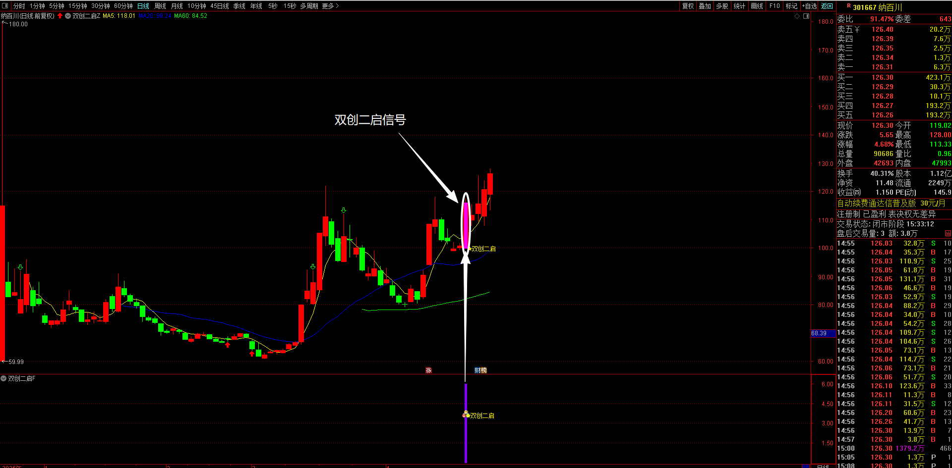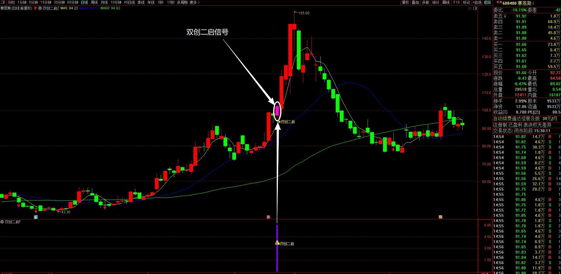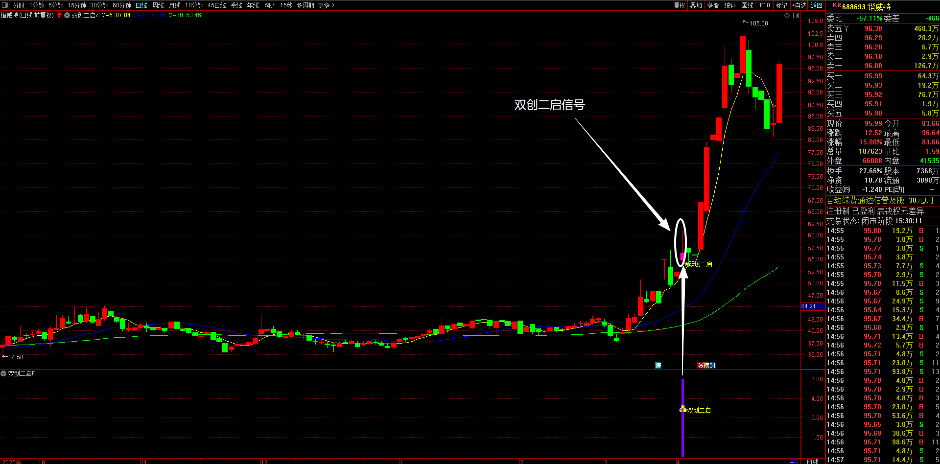 通达信【双创二启】主副图选股指标 “科创板+创业板”涨停后回调再突破形态信号 无未来函数手机电脑通达信可用