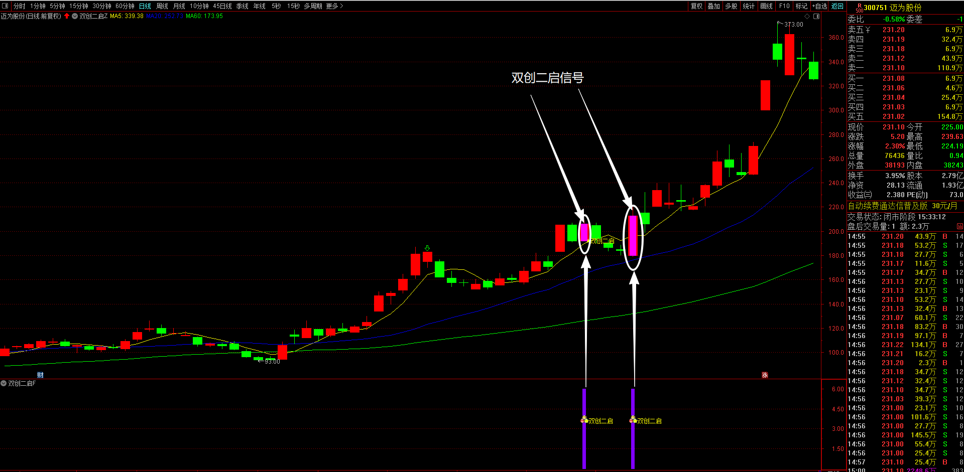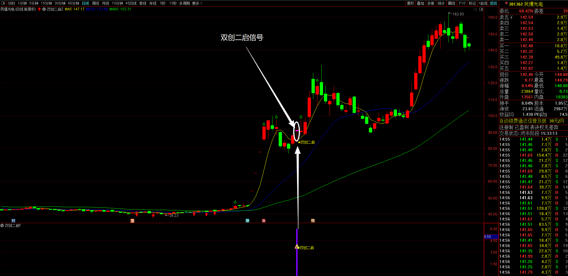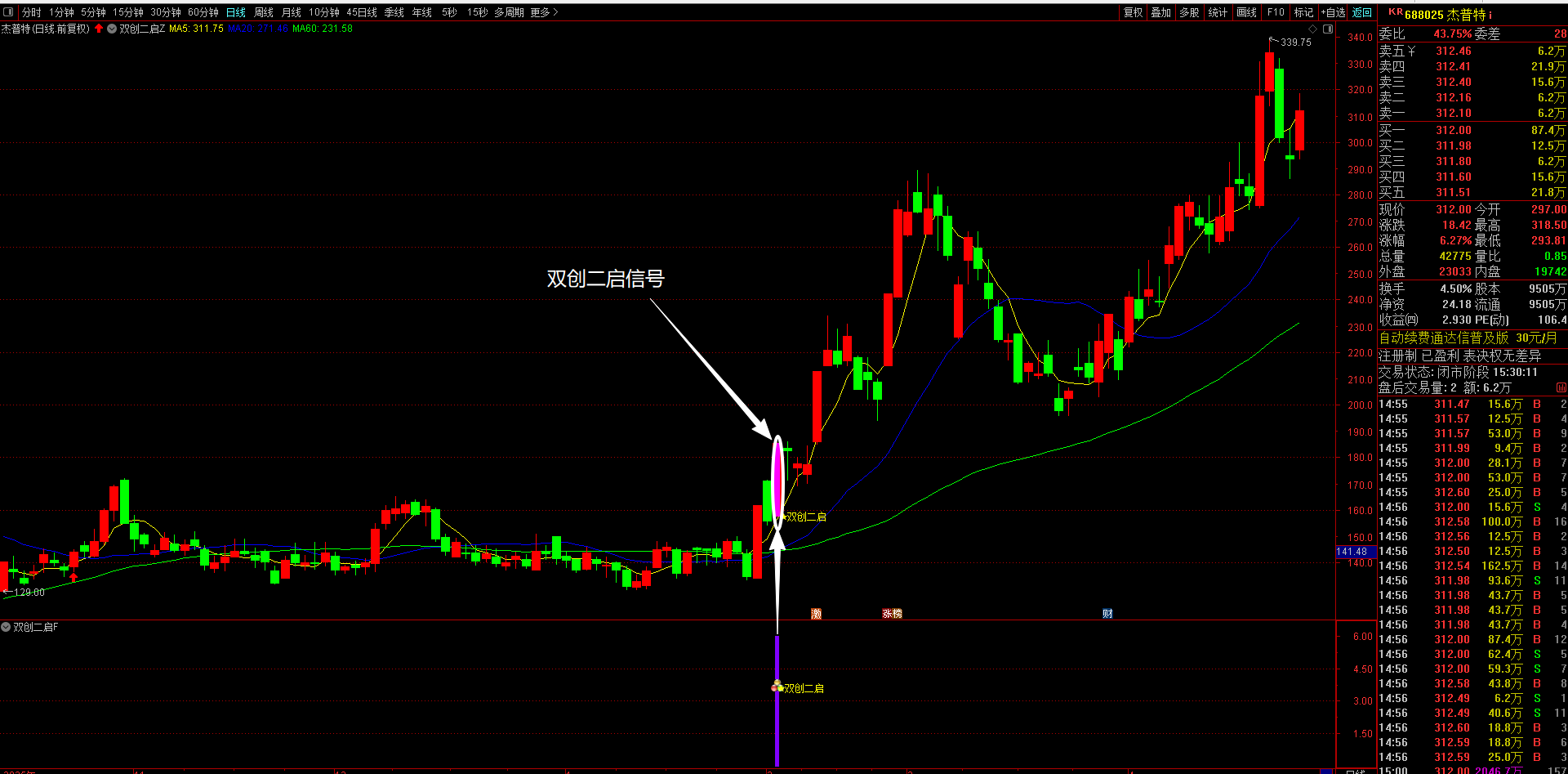 通达信【双创二启】主副图选股指标 “科创板+创业板”涨停后回调再突破形态信号 无未来函数手机电脑通达信可用