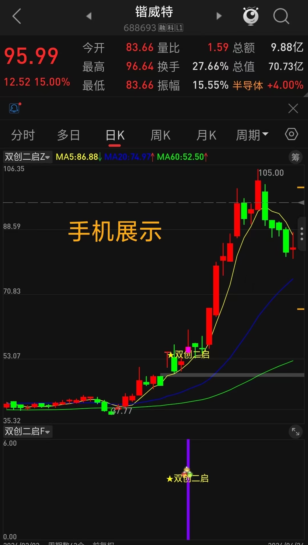 本指标专为创业板300和科创板688设计,旨在识别个股涨停后2-9天内的二次启动机会。