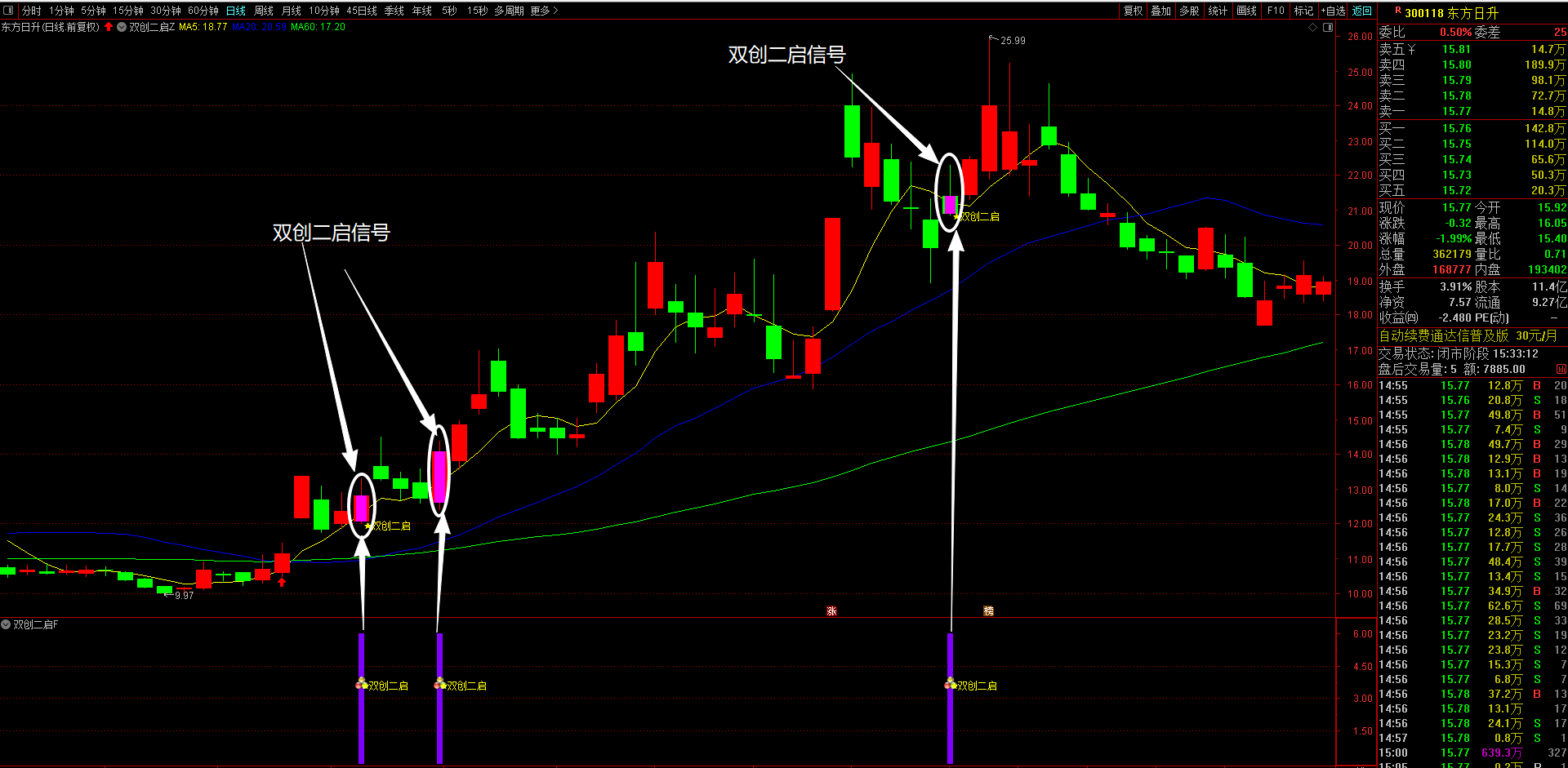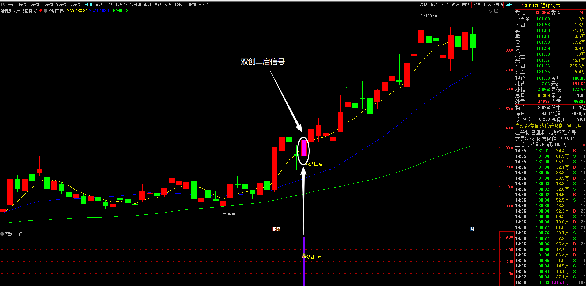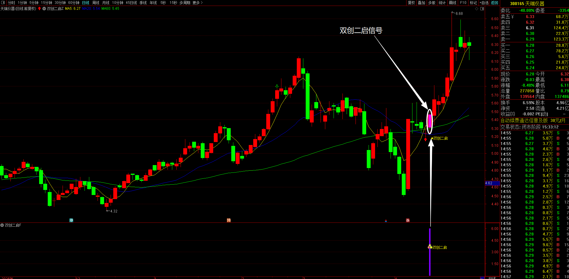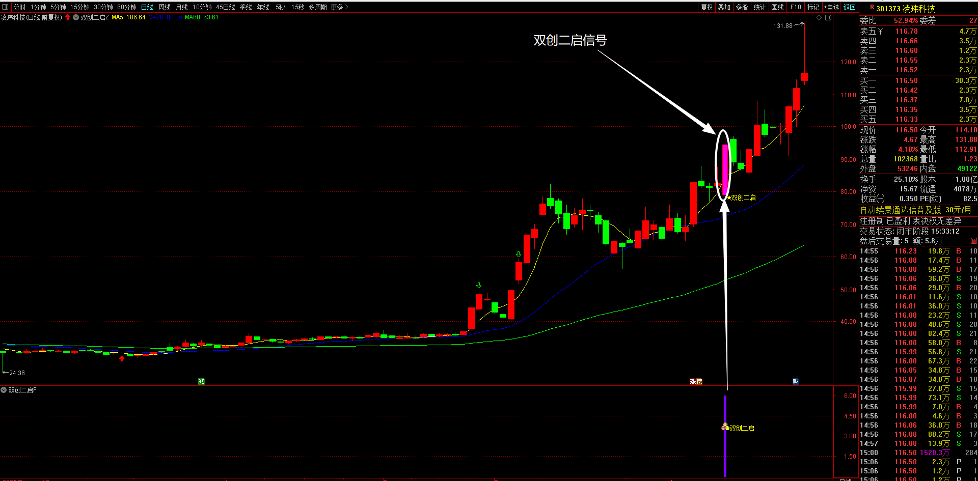 (本指标优势在于精准把握双创板块弹性最大的二次启动机会,通过多重条件过滤,有效规避假突破风险)