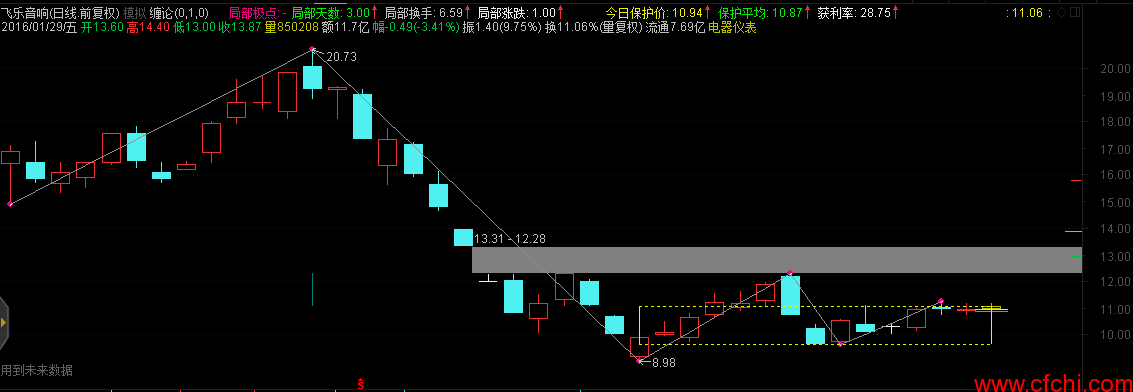 缠论中枢思想是前三笔为主的中枢画线,本指标以近三笔为主作出的中枢画线。