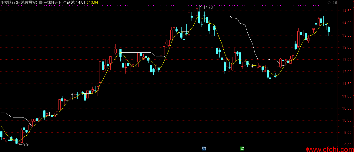 生命线:HHV(操作,13),LINETHICK1,COLORWHITE;{收盘破此线短逃};