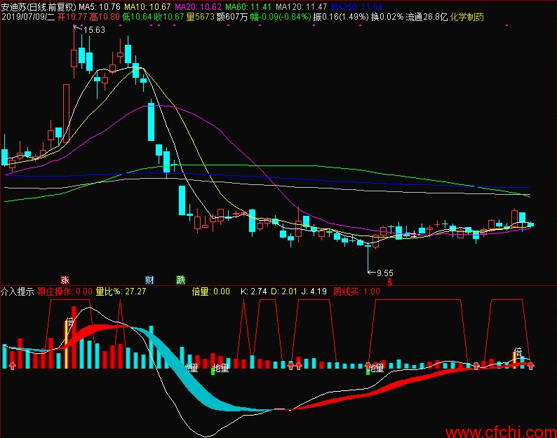 (经典成交量跟庄抓主升浪 通达信筹码跟庄指标公式 主图 源码 贴图)
