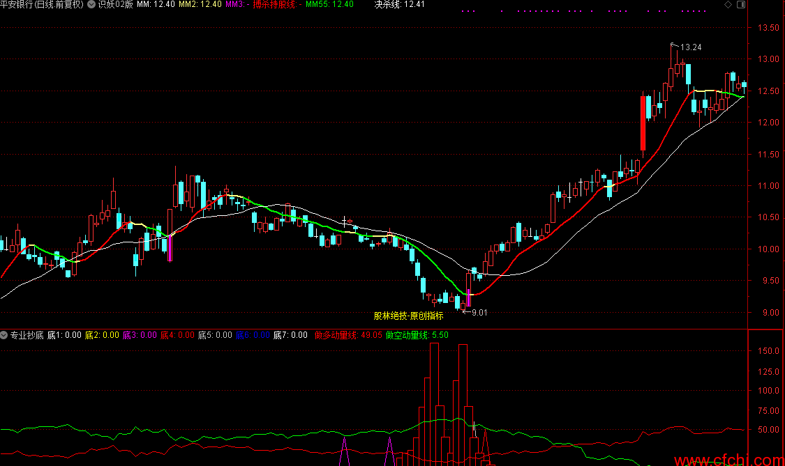 搏杀持股线:IF(MM>REF(MM,1),MM,DRAWNULL),COLORRED,LINETHICK2;
