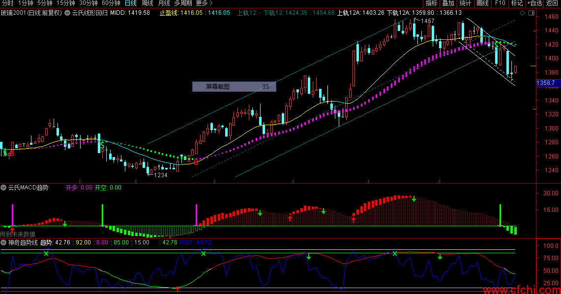 中轨:=IF(NP>FP,IF(LRL<=RH,LRL,DRAWNULL),IF(LRL>=RL,LRL,DRAWNULL)),COLORLICYAN;