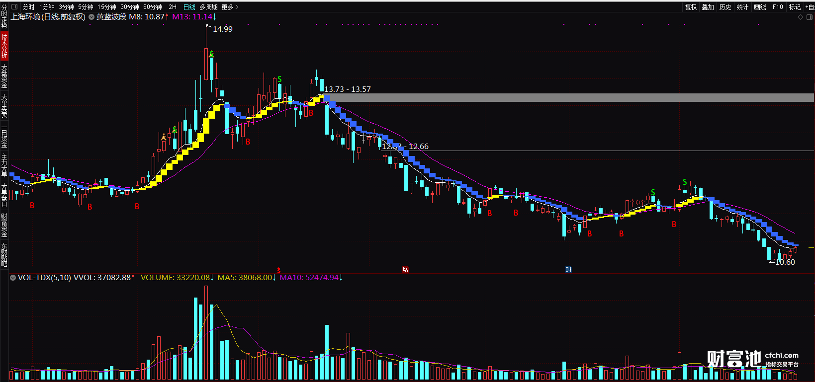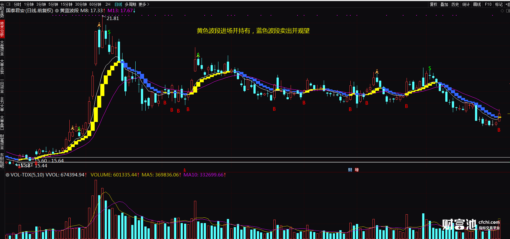 (做波段最有效的指标 黄蓝波段 通达信选股指标 主图 源码)