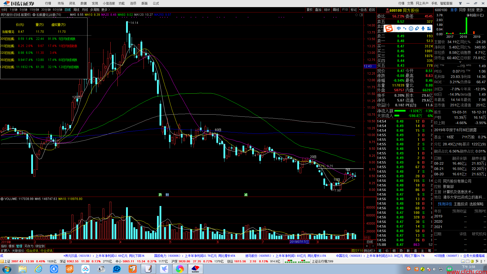 只有当对应周期内的价和量都预示为上涨或者都预示为下跌的时候。才会在右边出现文字,提示这条均价线是助长涨(支撑),还是领跌(压力)的作用。
