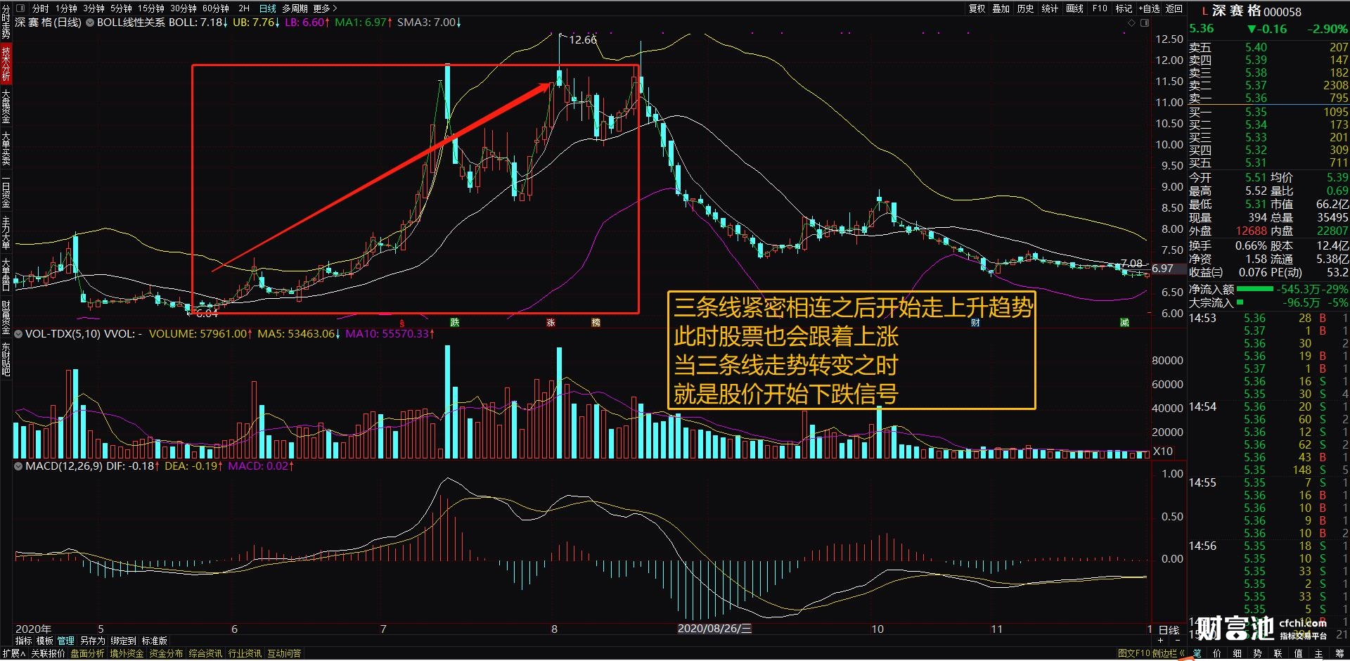 当三条线无限接近重合时,之后分开大幅上涨,此时股票大概率会上涨,当三条线走势开始转变之时,股票开始下跌。