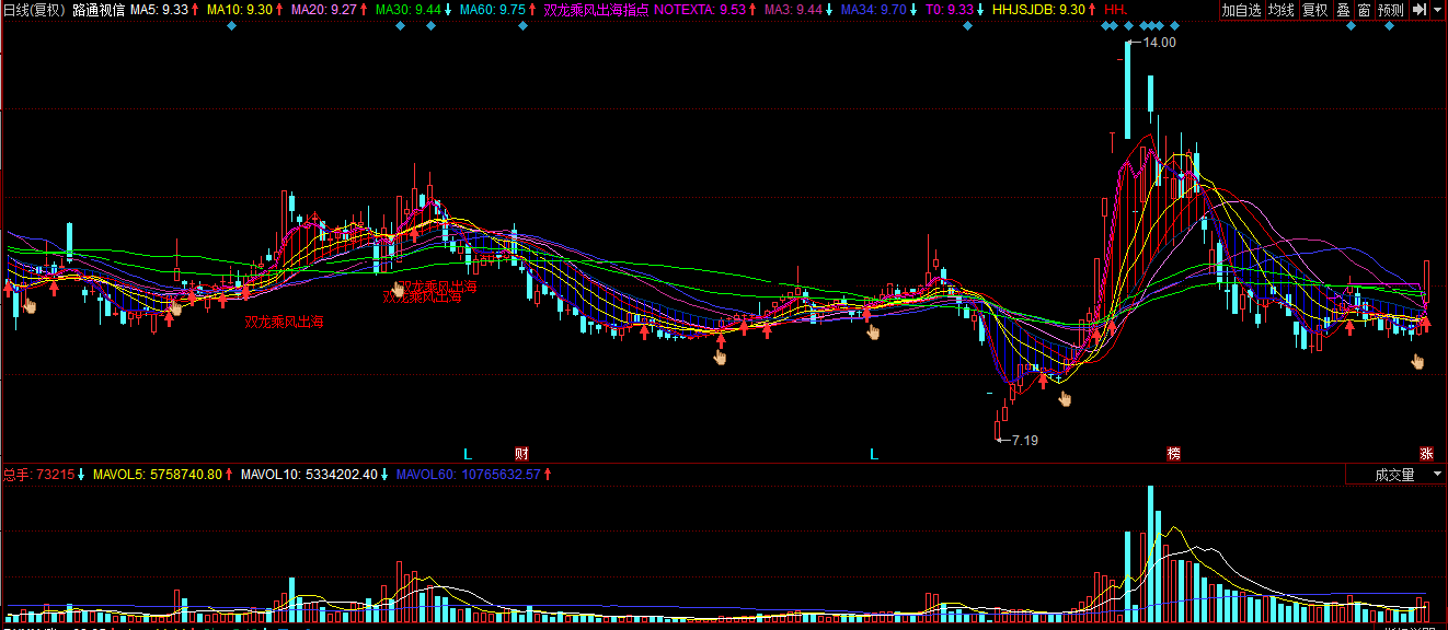 双龙乘风出海指点飞升同花顺指标公式 主图 贴图