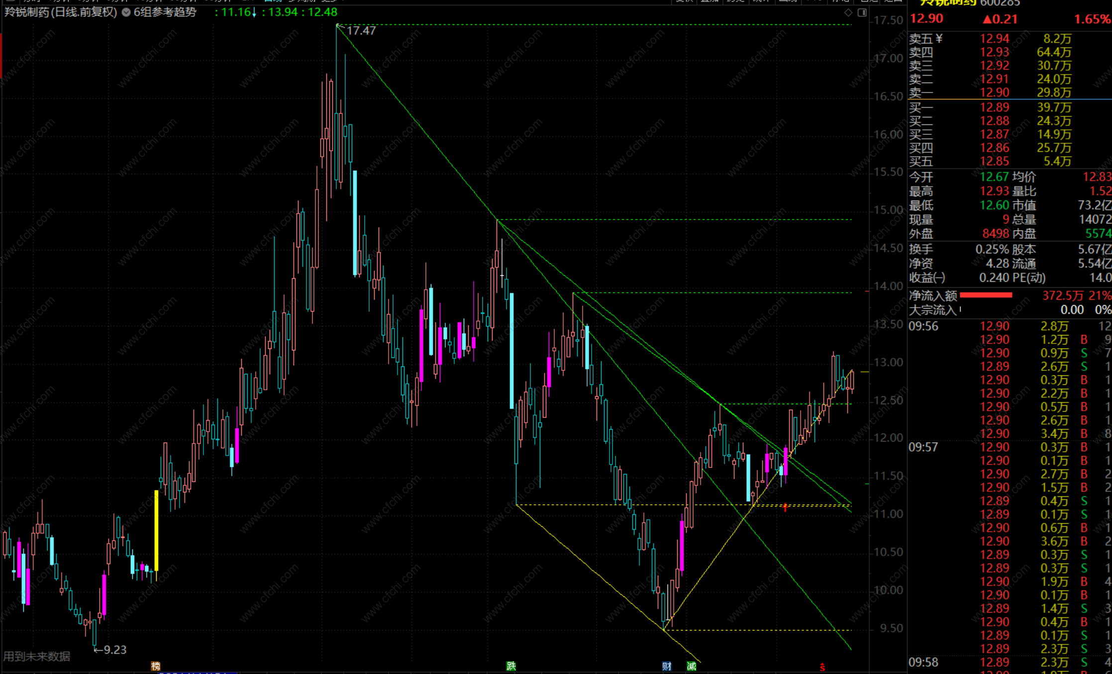 (通达信6组参考趋势线主图指标 贴图 无加密介绍)